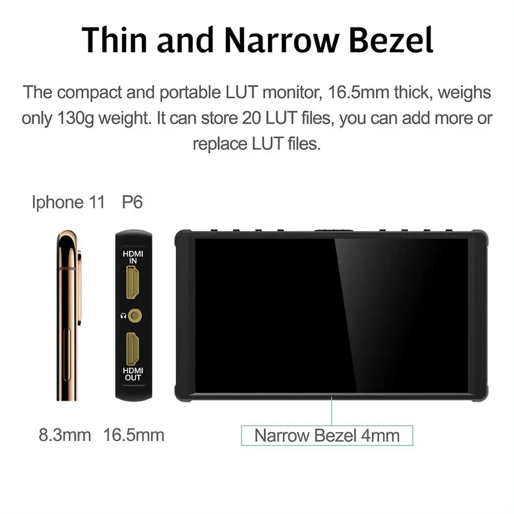 Отзывы о Новинка недорогой тонкий и ультра-узкий монитор P6 с IPS-экраном 5 дюйма 3D LUT/ Luma & RGB