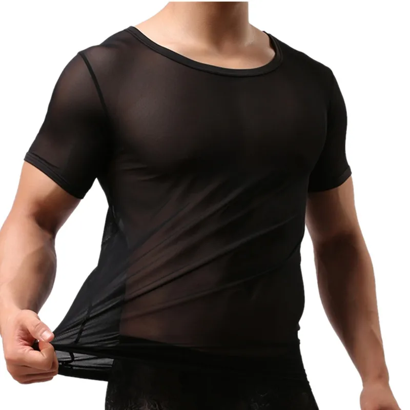 Мягкие мужские майки, футболки с коротким рукавом, Прозрачные топы, тонкие футболки для фитнеса, бодибилдинга, Мужская домашняя одежда, нижнее Белье для сна