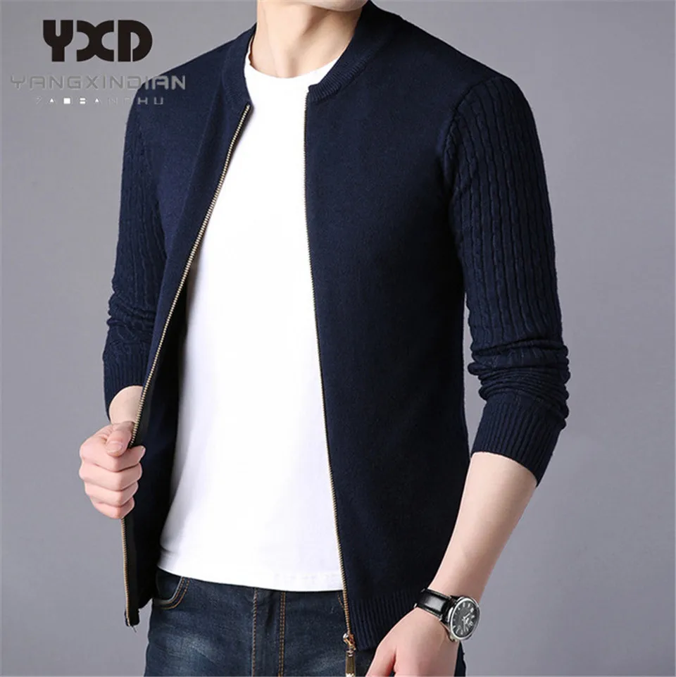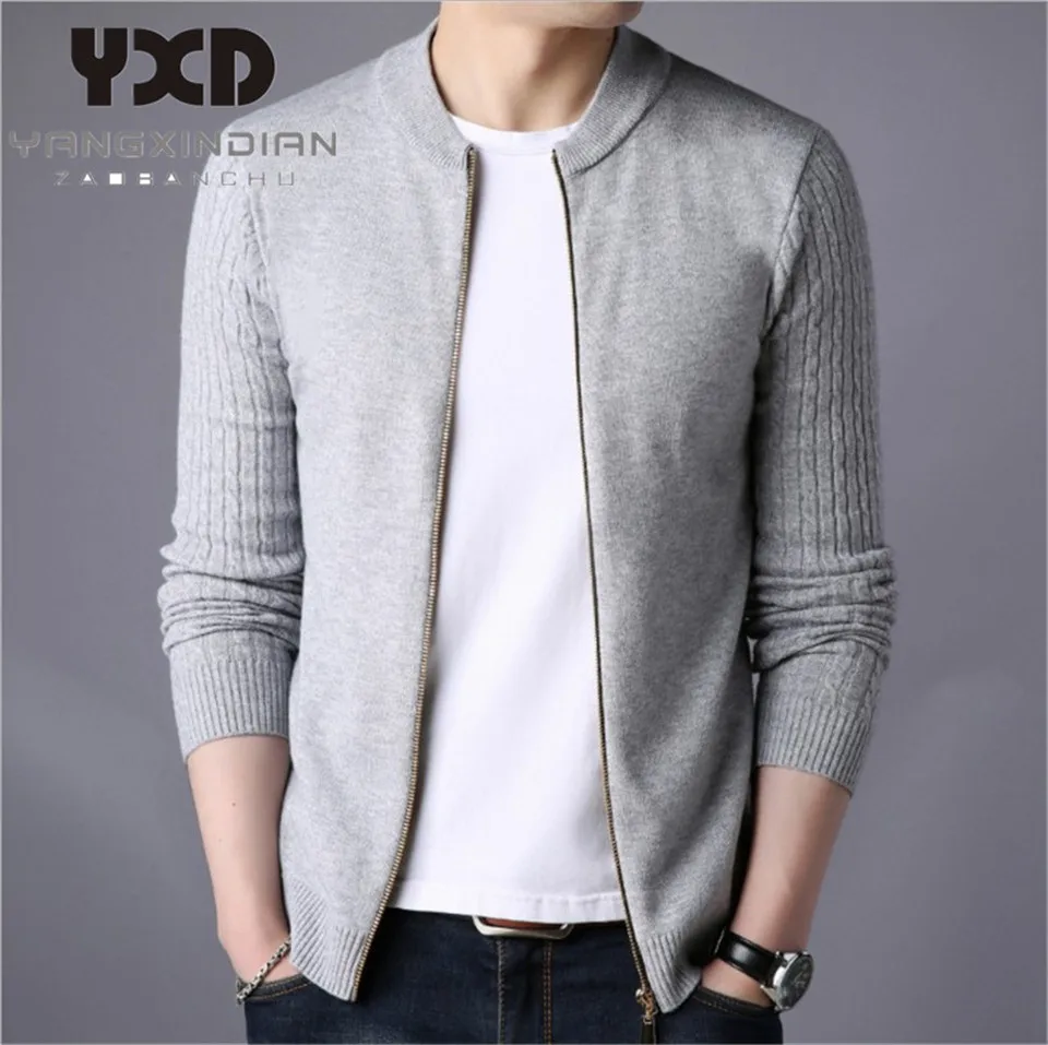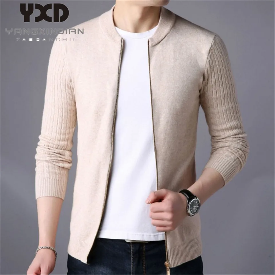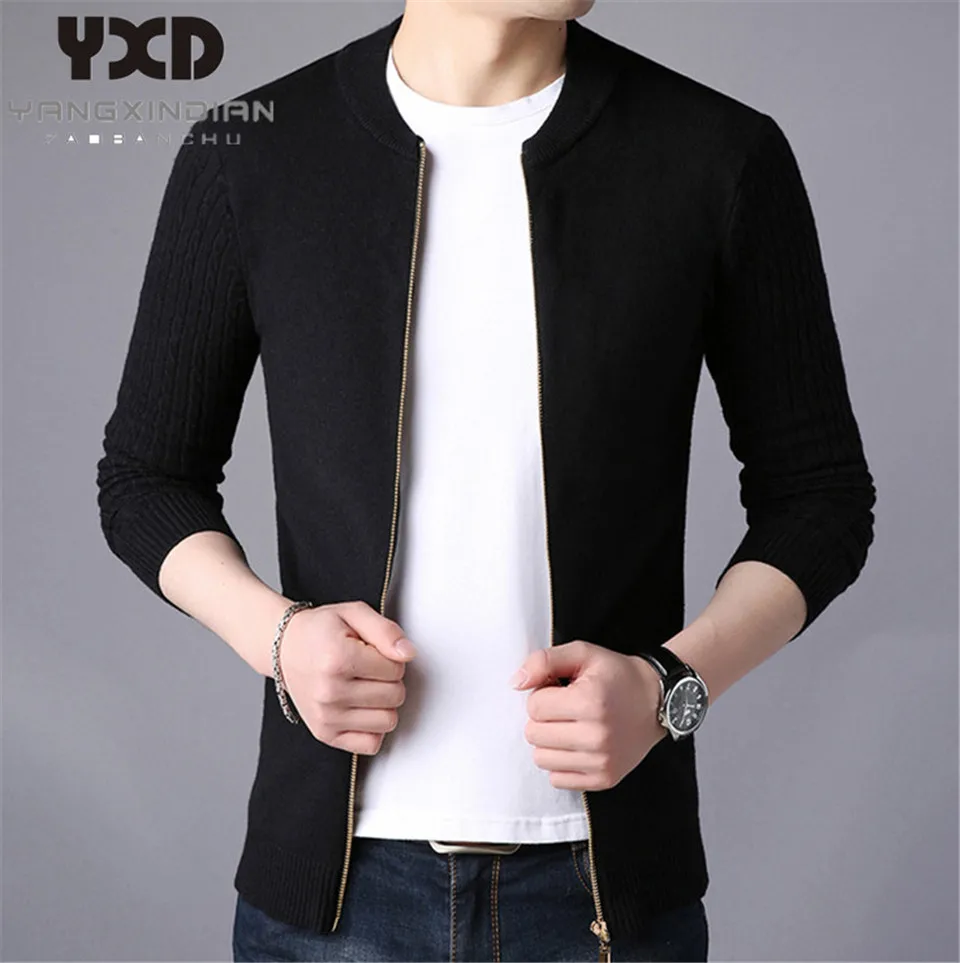 Мужская одежда, пальто на молнии, мужской вязаный кардиган, мужская повседневная однотонная куртка, мужские свитера, мужской свитер, приталенная мужская одежда