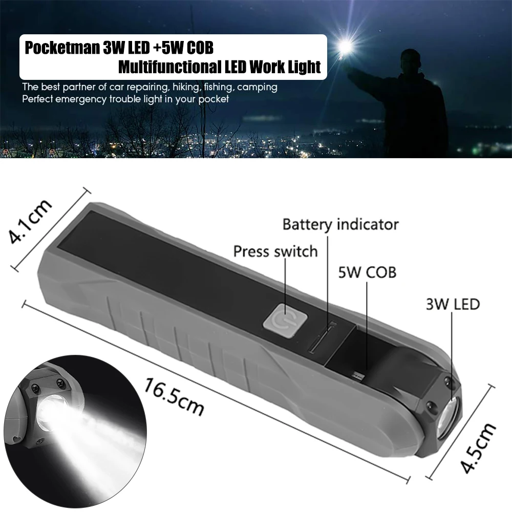 Светодиодный Рабочая лампа USB Перезаряжаемый фонарик Магнитный факел Гибкая инспекционная ручная лампа Рабочий свет наружный прожектор переносная Рабочая лампа для ремонта автомобиля Аварийная работа