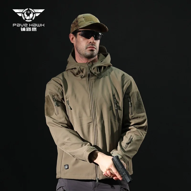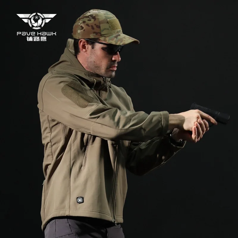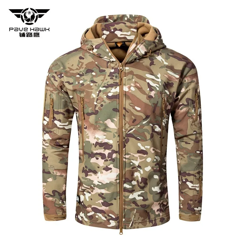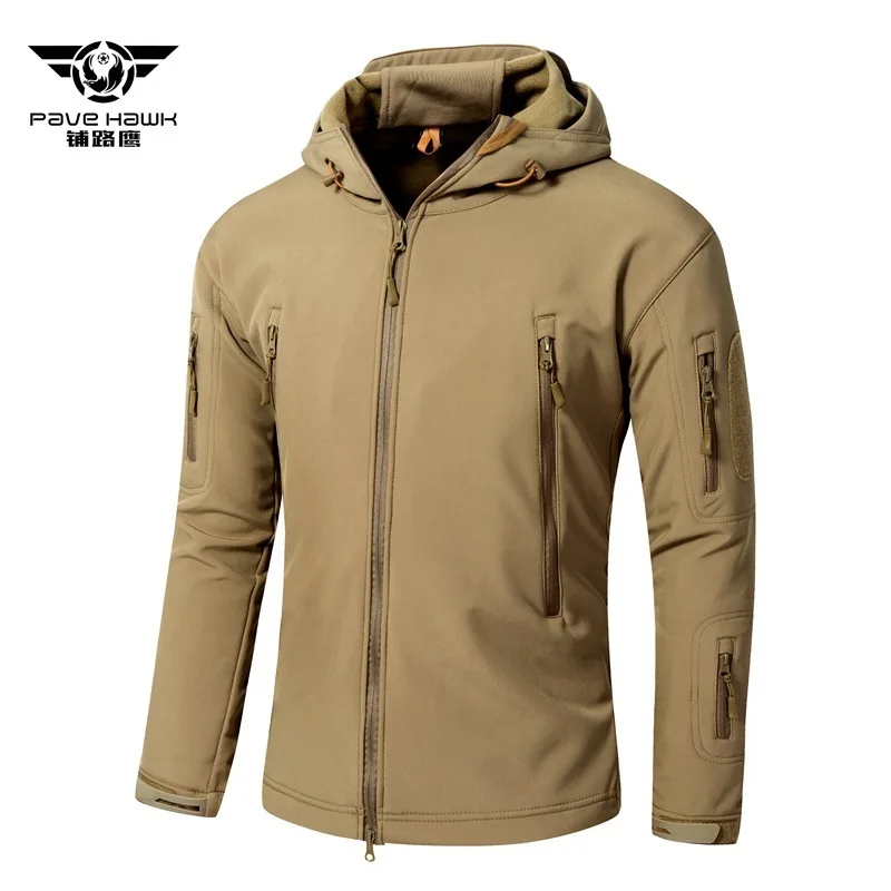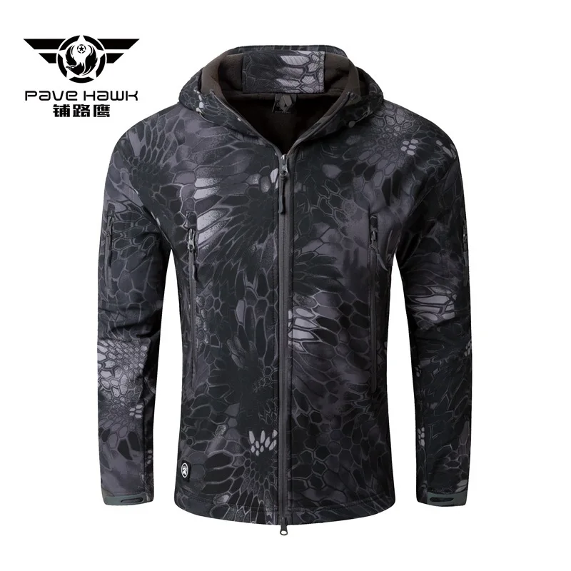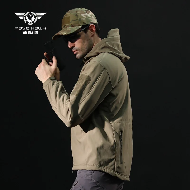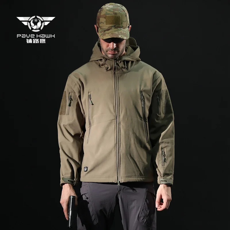 Зимняя флисовая куртка Водонепроницаемый 3-х слойные из смесовой ткани с начесом теплое Свободное пальто с капюшоном для мужчин Открытый Кемпинг пеший Туризм военный тактический одежда