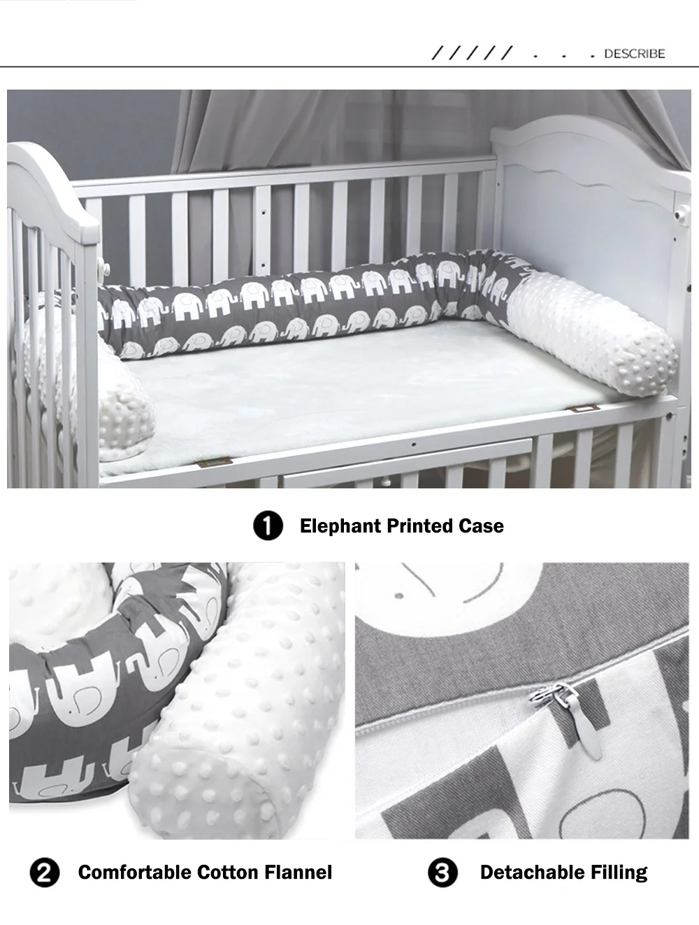 2 м детская кроватка бампер Подушка кроватка кровать малыш Подушка Хлопок слон печатных моющийся чехол
