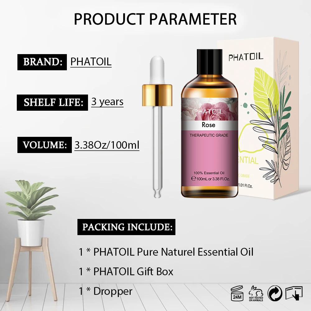 Отзывы о 100ML Pure Natural Rose Essential Oils Humidifier Diffuser Lavender Vanilla Peppermint Geranium Cloves Basil Tea Tree Aroma Oil - купить по