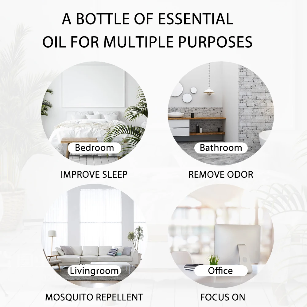Стимулирует сон. Оживление герани, пачули и мяты перечной помогают оживить вас, в то время как Лемонграсс и эвкалипта отталкивают