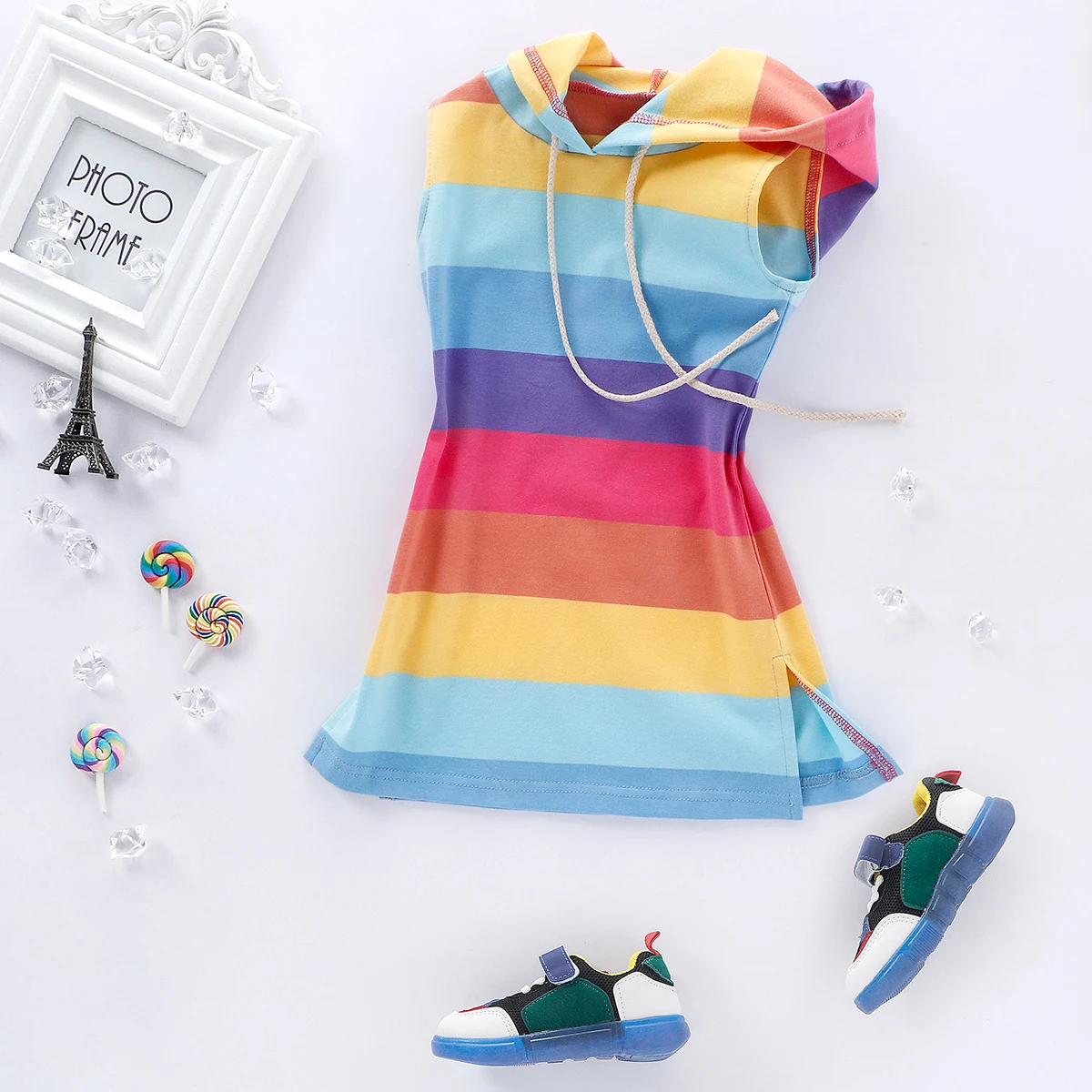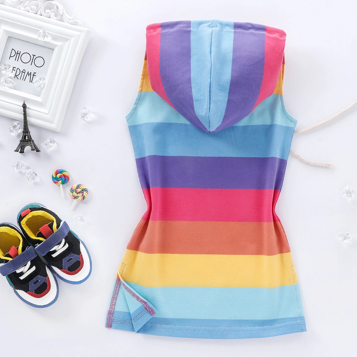 Отзывы о Платье в радужную полоску для маленьких девочек детское платье-Халат с капюшоном