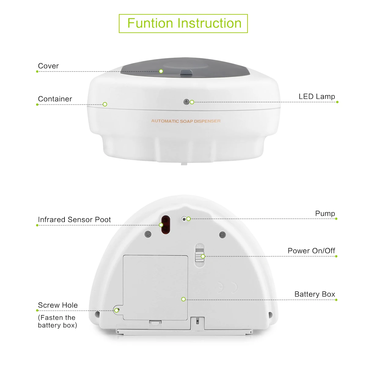 Особенности:Чистый и безопасный: Встроенный умный инфракрасный датчик движения, полностью автоматическая и Бесконтактная работа, больше не контактирует, чтобы избежать второй перекрестной инфекции.