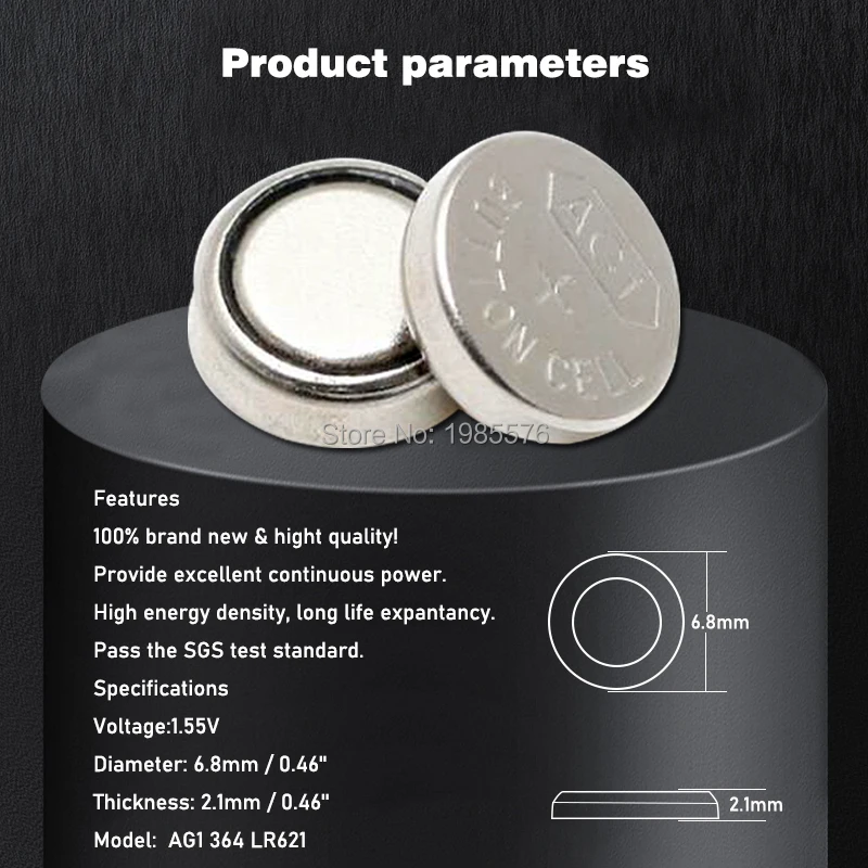 Отзывы о 50pcs Alkaline Cell Coin Battery 1.55V AG1 LR621 Button Batteries 364 164 531 SR621 SR621SW SR60 SP364 TR621 AG 1 For Watch Toys - купить по