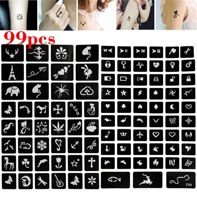 Отзывы о 99 шт. аэрография Блеск Временные татуировки стикер трафарет рисунок ребенок тату
