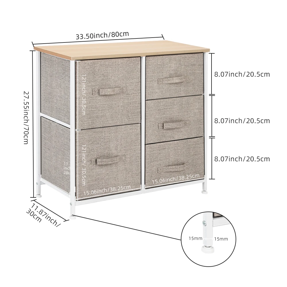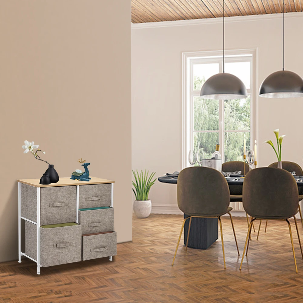 Комод Органайзер с 5 ящиками, тканевый комод башня для спальни, прихожей, прихожей, шкафы, лен/натуральный