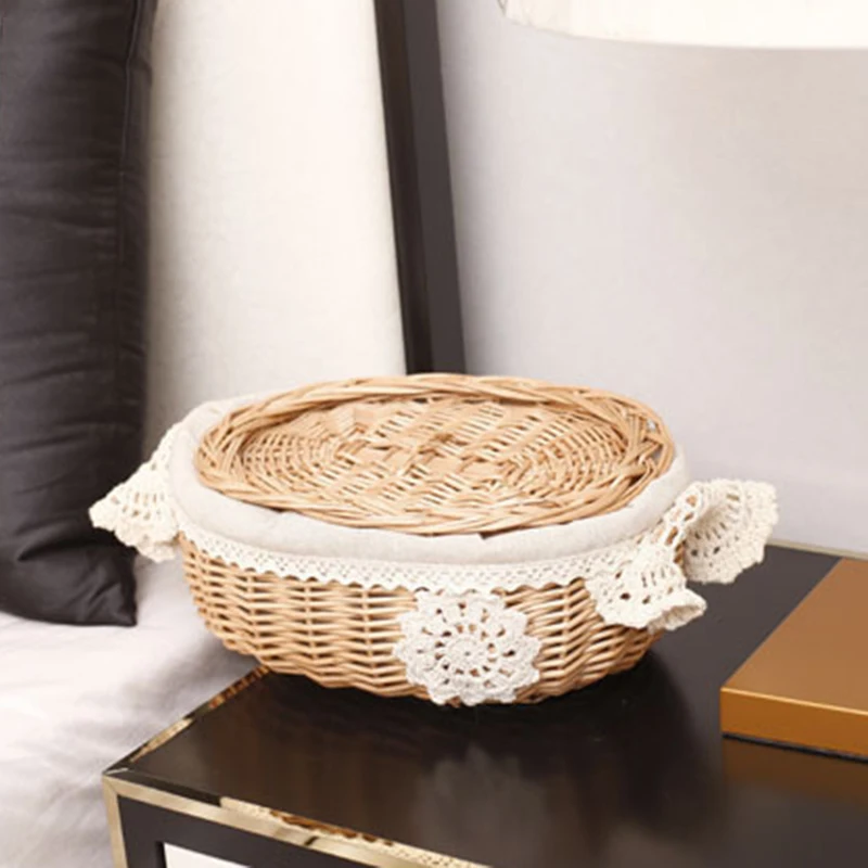 Отзывы о Плетеная корзина для хранения из ротанга с крышкой украшения дома и гостиной