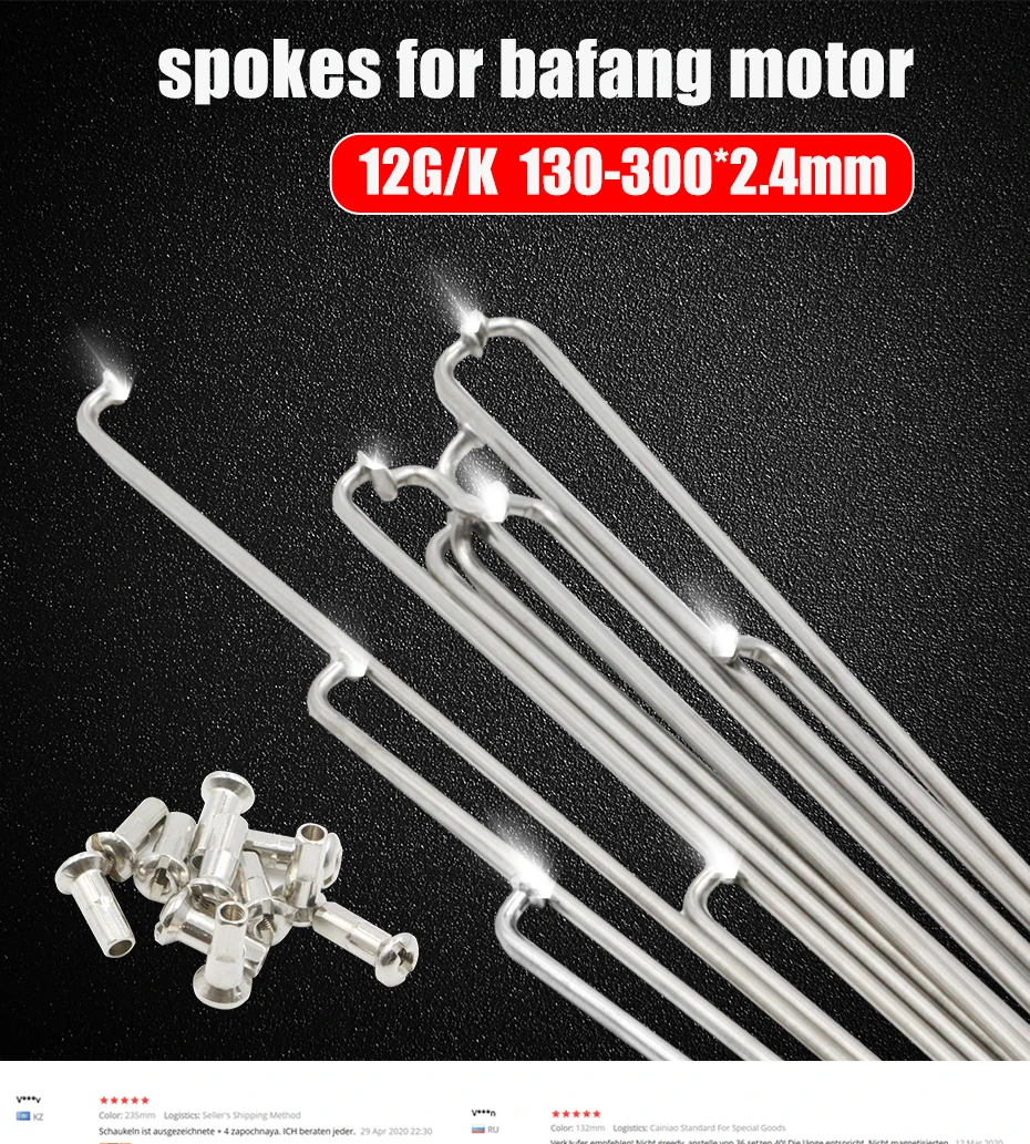 Отзывы о 12G/K 130-300* 2.4mm Bicycles Spokes with Nipples "J" Bend Silver Steel Wheel spokes for Bafang Motor MTB Road Bike Rims | Спорт и