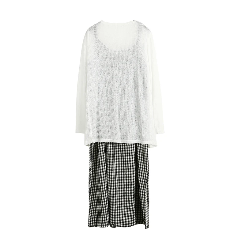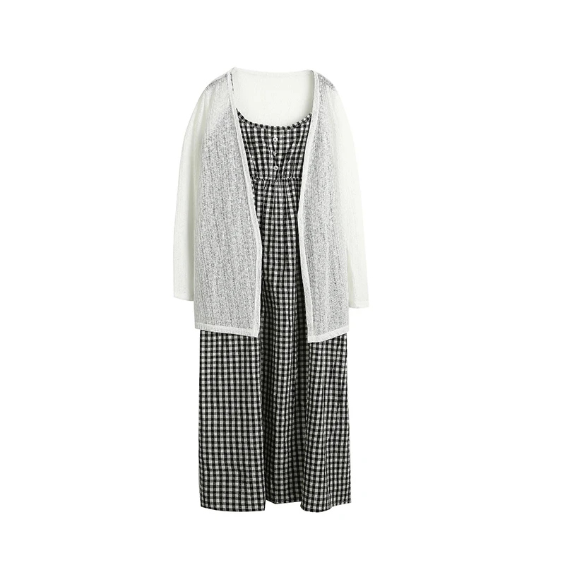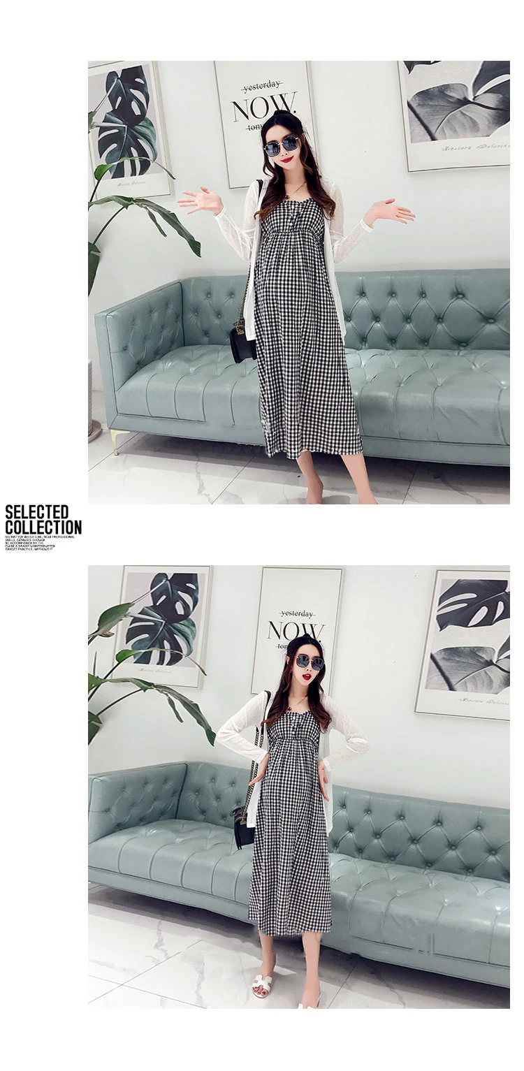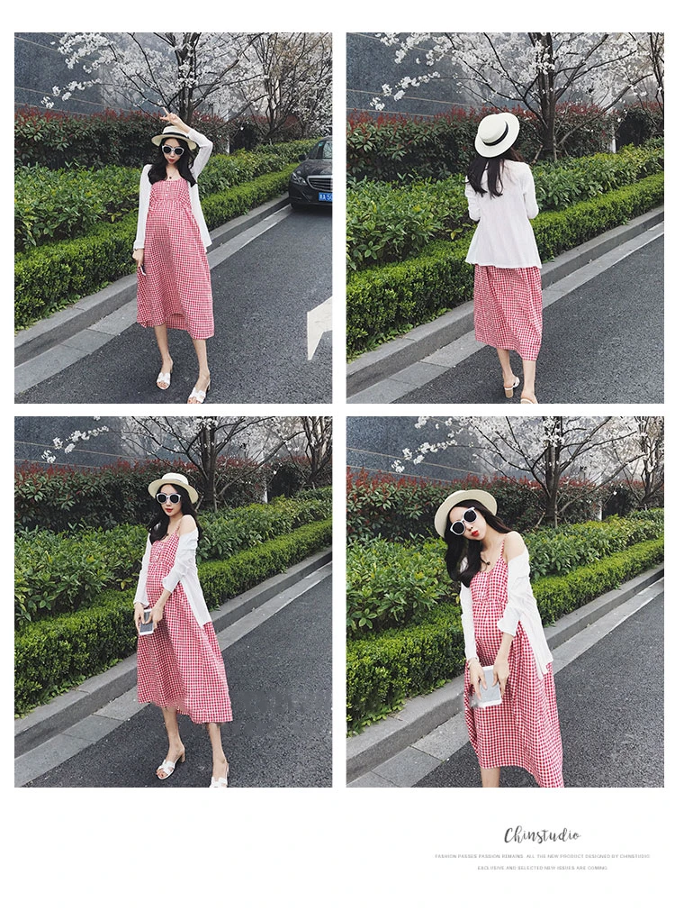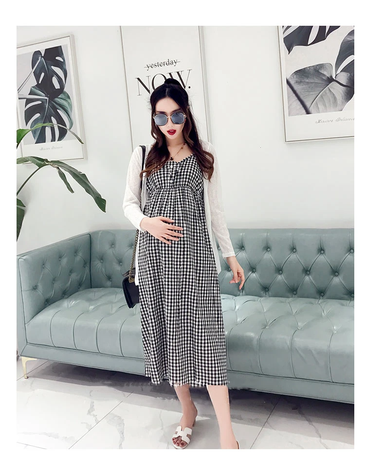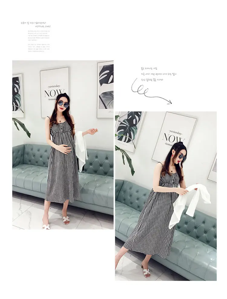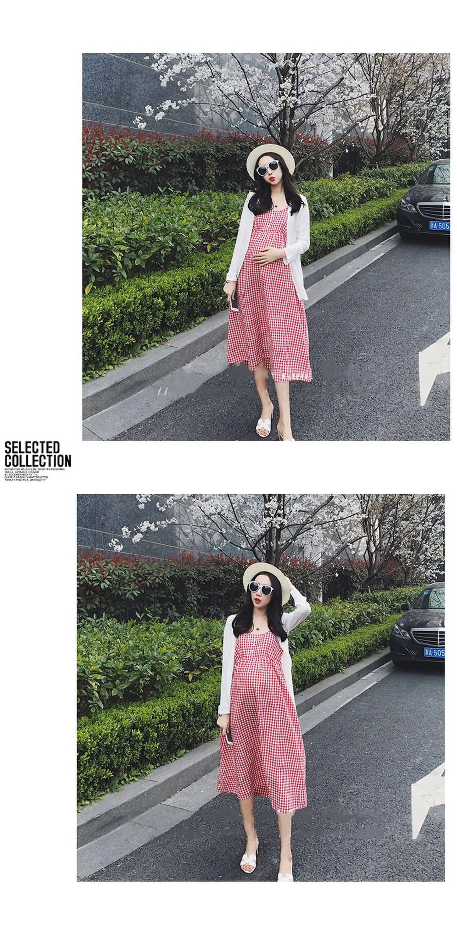 Отзывы о Комплект летней одежды для беременных 2020 клетчатое платье на бретелях + белый