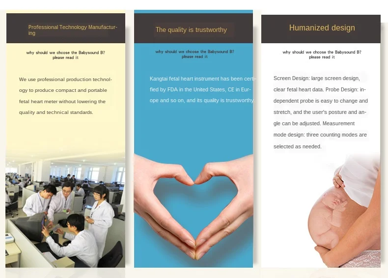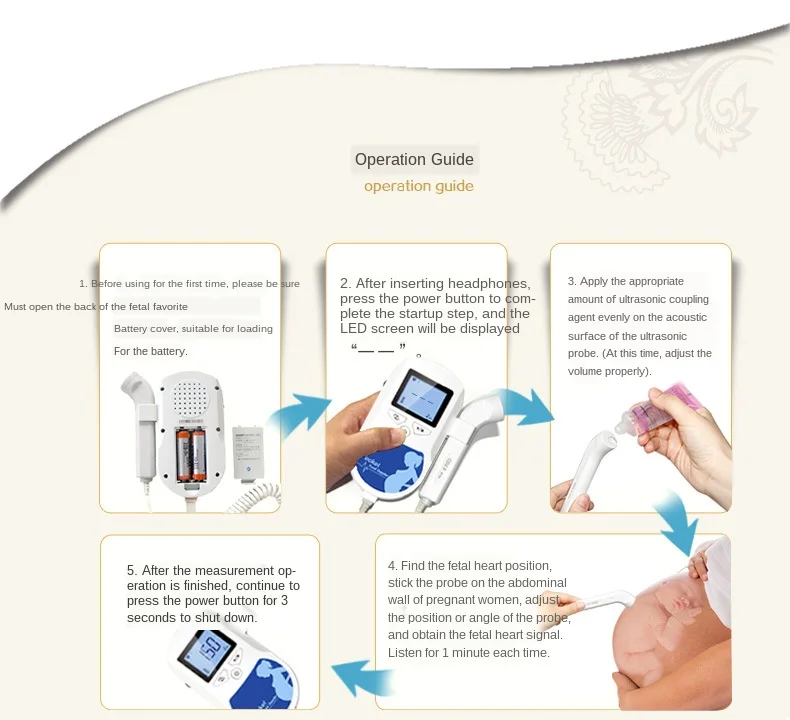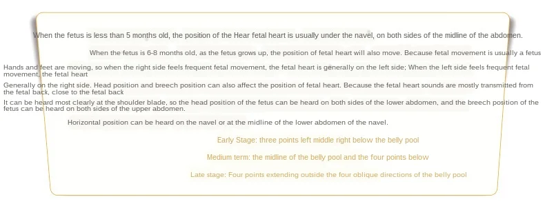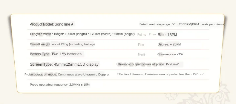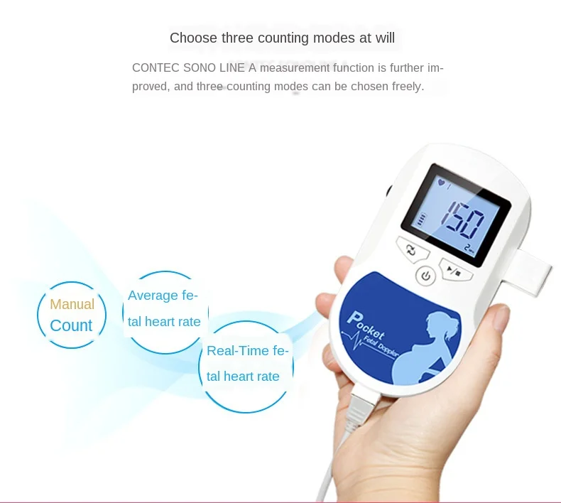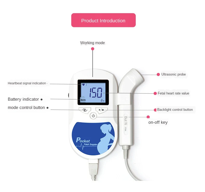 Характеристики производительности 1. Два режима измерения цифрового переключателя кривой по желанию 2. Oled-дисплей, четкое чтение 3. Интегрированный дизайн, обтекаемый внешний вид 4. Маленький и простой в использовании 5. С функцией отображения силы сигнала, удобно для пользователей, чтобы найти точки измерения 6. Те же технологии DSP и алгоритм сердечного ритма плода, что и монитор плода, используются для обеспечения точности и надежности мониторинга сердечного ритма плода -Слушайте своего новорожденного ребенка с 14-16 недель -Встроенный динамик обеспечивает высокую точность, чистый звук ---- большой ЖК-дисплей с обратной связью -Можно использовать с гелем или без него. Также детское масло и оливковое масло также являются идеальным выбором. -Совместимость с наушниками и динамиками