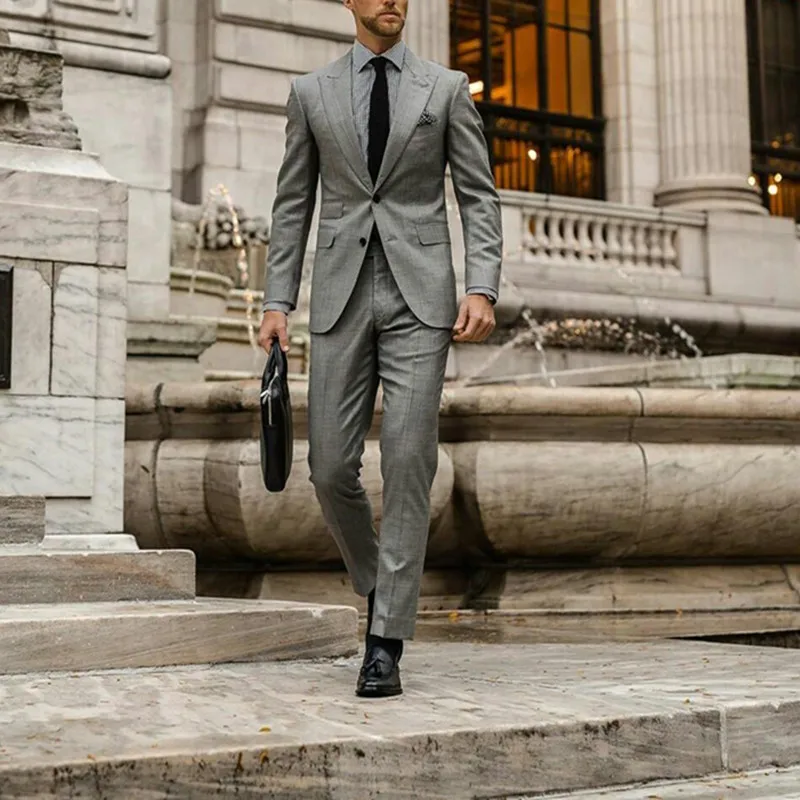 Отзывы о Светильник-серые мужские костюмы с двумя пуговицами смокинги для жениха на