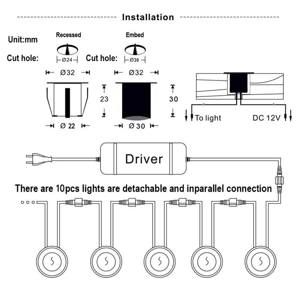 ►Модель: светодиодный светильник ►Transformer Вход: 100-240VAC В переменного тока, 50/60 Гц ►LED светильник палубы Вход: 12VDC ►Power: 0,6 вт/шт ►Цвет светодиода: теплый белый и натуральный белый ►LED источников: SMD2835 ►Световой поток: 50 лм (однослойный светильник) ►Материал: нержавеющая сталь + ABS ►Размер: d32 мм * 23 мм (диаметр * глубина) ►Black защиты оболочки: 29*37,5 мм (диаметр * глубина) ►Opening:22 мм ► Водонепроницаемый Рейтинг: IP67 ►Цветовая температура: натуральный белый: 4500K теплый белый: 3000K ►Длина кабеля: около 100 см/39,4 дюйма (на светильник) ►Plug Длина: прибл 2,5 м ►Solar Длина кабеля: 2,5 M + 6 м ►Solar панель: 3,7 V / 2200mA литиевая батарея ►Время зарядки: 6 часов ►Время работы: 16 часов -Приложения: Твердый деревянный пол; Ламинат; Ковер; Керамическая плитка; Натуральный камень; Кварцевое напольное покрытие (внутри и снаружи) (заменить потолок, небольшой вниз светильник)