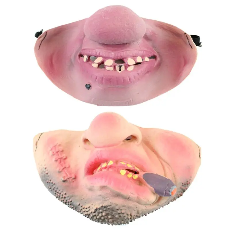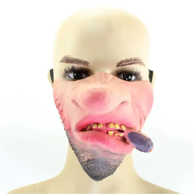 Взрослая смешная маска, латексная полулицевая страшная маска с большим носом/держателем сигарет, узор на Хэллоуин, вечерние ролевые игры, реквизитОписание: