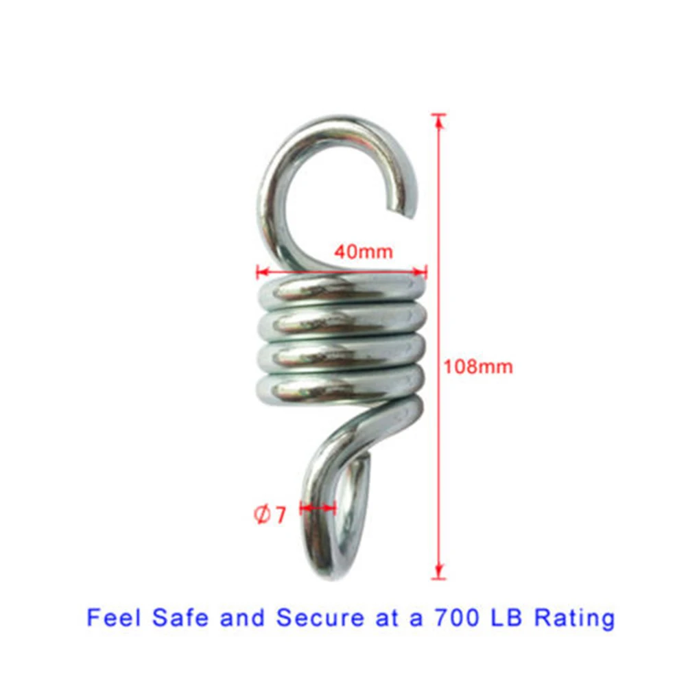 * Вес пружины превышает 500 фунтов. Пружина помогает снять стресс от ударов, обеспечивает более комфортное, мягкое ощущение и увеличит срок службы вашего гамака, в дополнение к вашей монтажной поверхности.