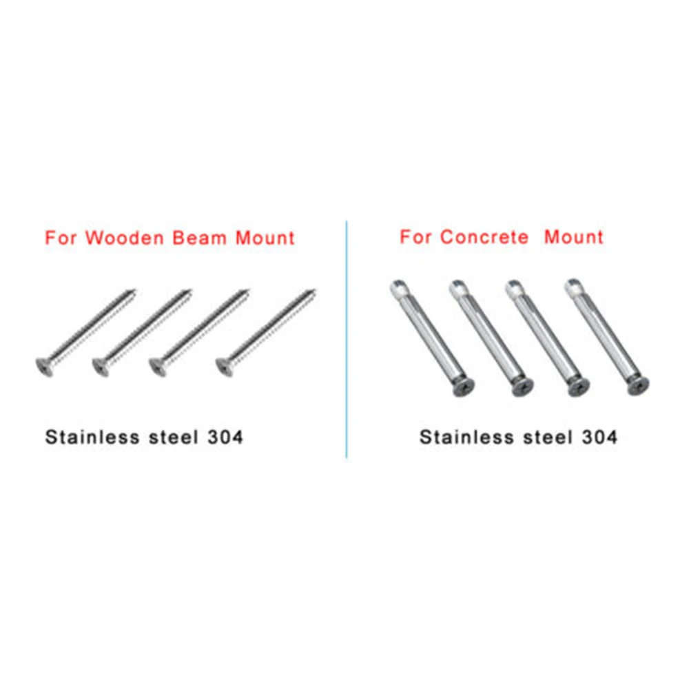 * Потолочное крепление-304 Монтажная пластина из нержавеющей стали надежно крепится к балкам, доскам, бетонному потолку или любой другой верхней поверхности. Включая 4 защитных якоря M6 * 60 для бетонного потолка, 4 нержавеющих винта M5 * 60 для деревянного луча.