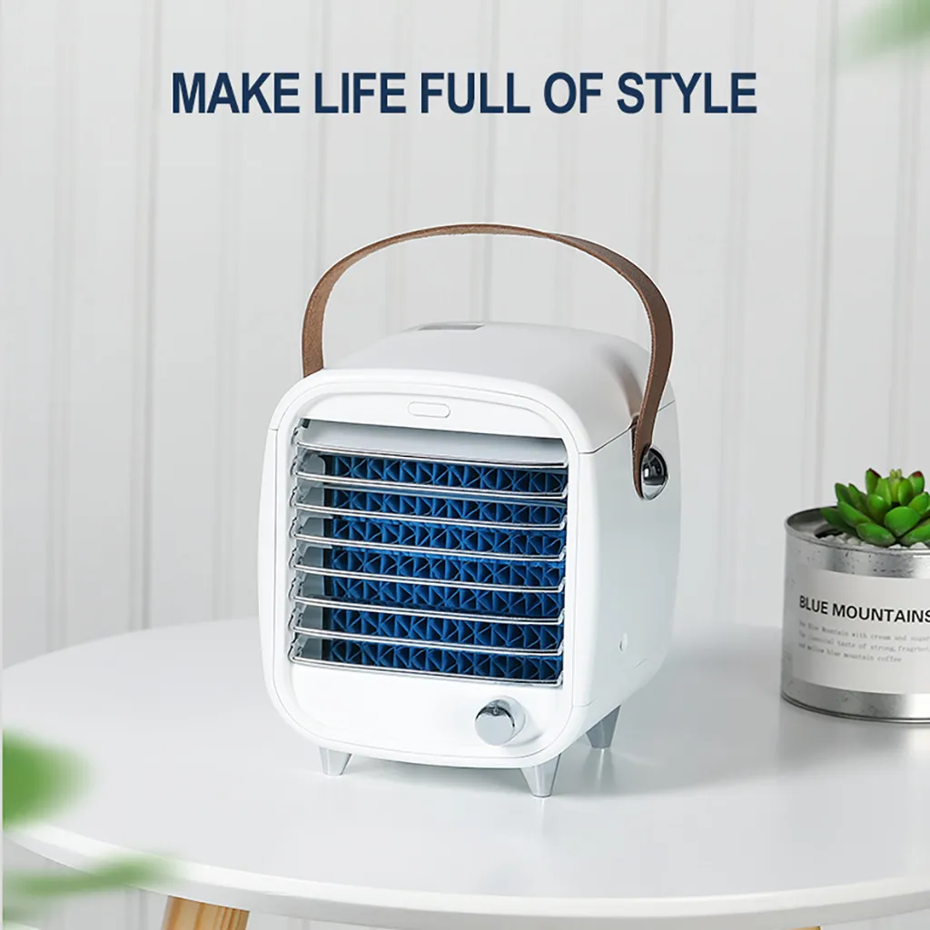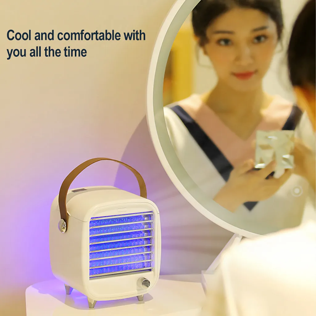 Портативный светодиодный кондиционер, маленький настольный вентилятор охлаждения USB, встроенный контейнер для льдаОсобенности: