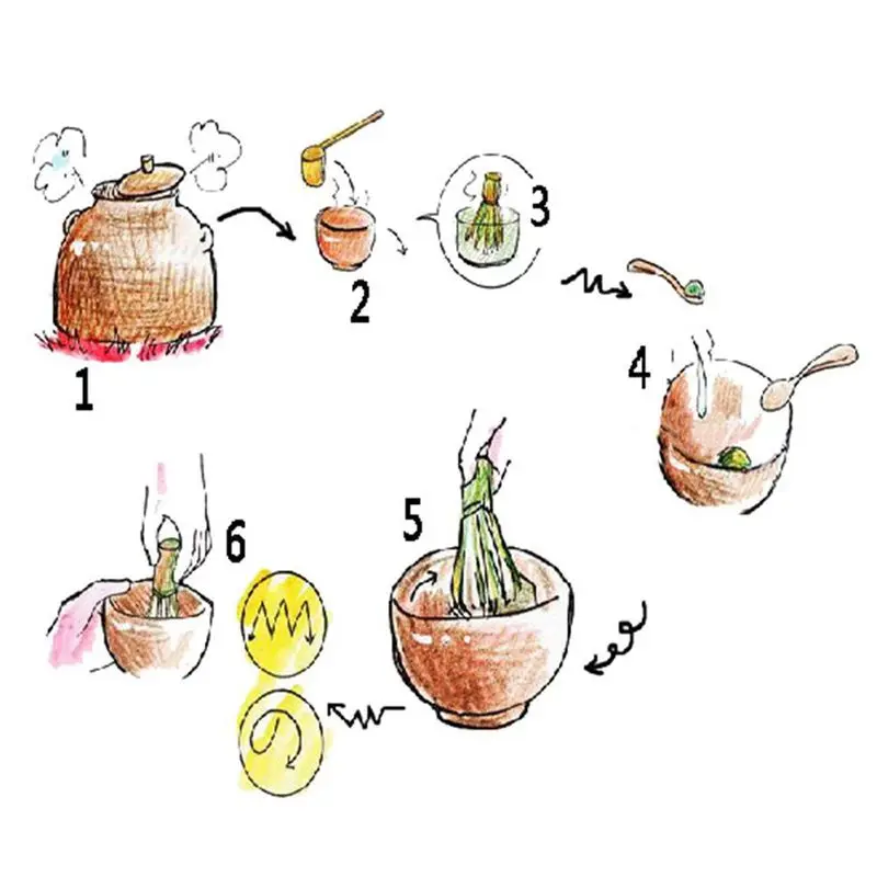 Рекомендуется просеивать Matcha powderfor better lather и увлажнять в теплой воде, чтобы смягчить его.