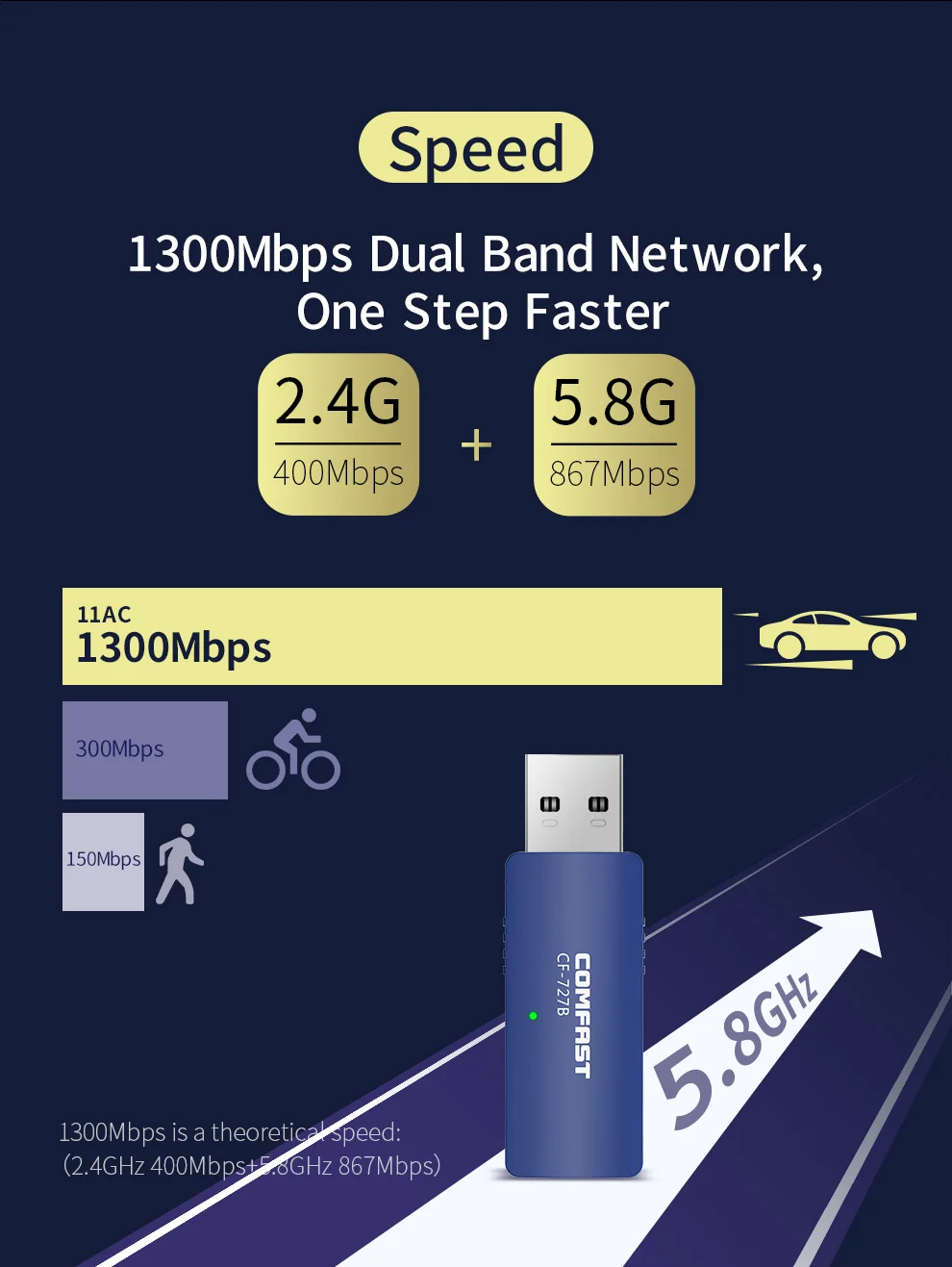 Отзывы о 5 ГГц беспроводной Wifi адаптер 1300 Мбит/с двухдиапазонная антенна 802.11AC Бесплатный