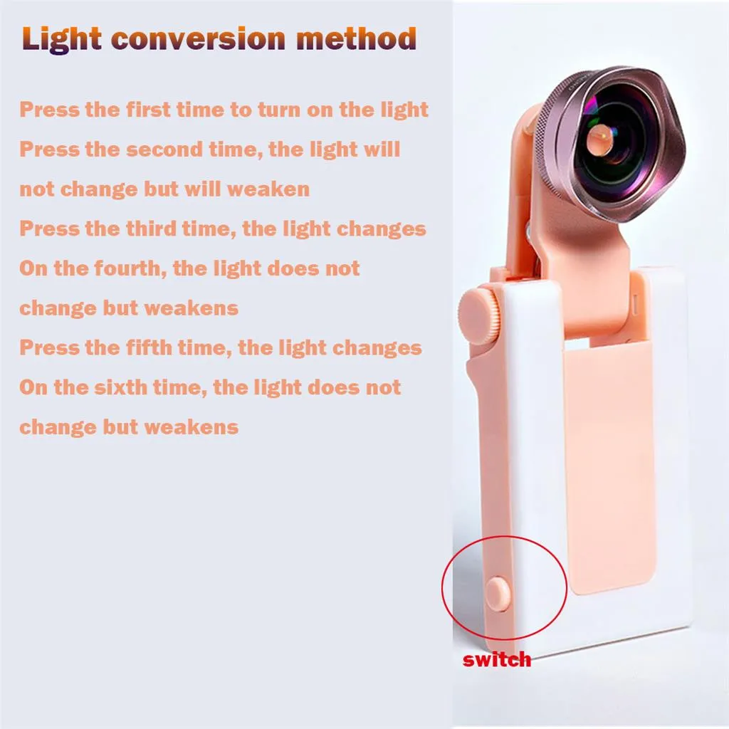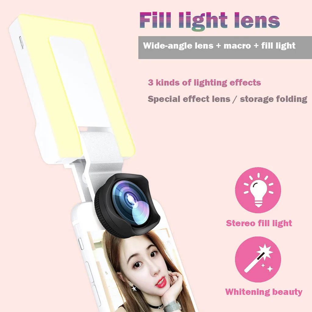 1. Многофункциональный дизайн: Этот светильник для селфи с объективом камеры Selfie, запись видео, живое видео, фотография, темный пейзаж vlogging. Это Имеет заполняющий светильник, красоту, функцию лифта лица.