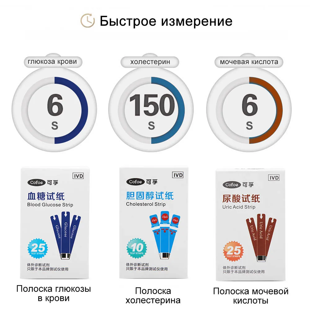 Отзывы о Cofoe 3 в 1 холестерин Мочевая Кислота глюкоза крови бытовой измеритель медицинский