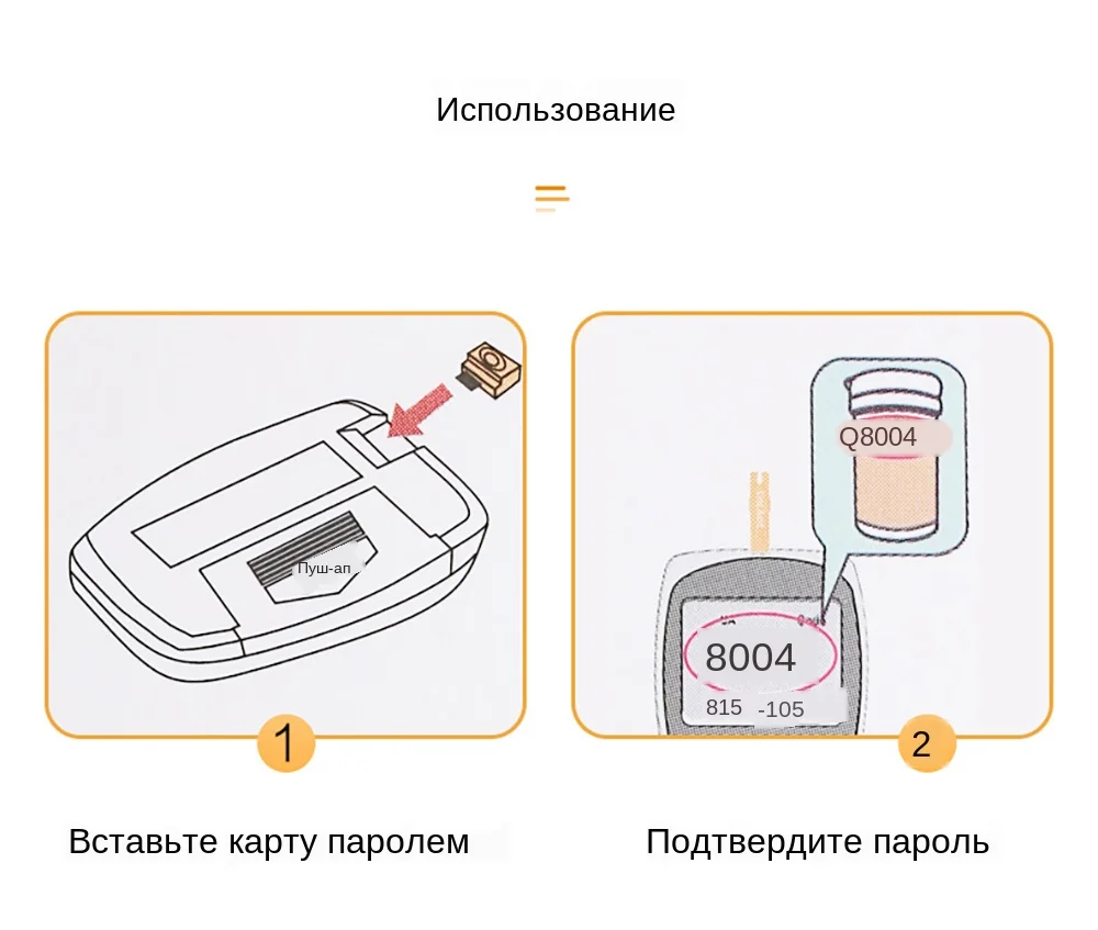 1. Открутите переднюю крышку ручки для сбора крови против часовой стрелки, поместите основание иглы для сбора крови на иглу и убедитесь, что она правильно установлена. 2. Прикрутите переднюю крышку ручки для сбора крови и отрегулируйте глубину дискретизации крови. 3. Удалите тест-полоску из тестовой ленты и сразу же накройте тестовую полоску, чтобы держать другие тестовые полоски сухими. 4. Вставьте деталь контактной линии тестовой бумаги в порт обнаружения анализатора, анализатор автоматически запустится. 5. Убедитесь, что код на экране такой же, как на тестовой ленте. Когда на экране отображается капля воды, анализатор готов для проверки. Внимание: если капли не появятся, пожалуйста, удалите неиспользованные тест-полоски и вставьте их снова. 6. Потяните рычаг для сбора крови назад, чтобы подготовить кровь 7. Поместите ручку для сбора крови на место сбора крови Нажмите на кнопку «назад» 8. Протрите сначала каплю крови, не используйте. Аккуратно массируйте пальцы, чтобы форма круглой капли крови. Внимание: Убедитесь, что у вас достаточно крови. Если кровь разрастается, пожалуйста, протрите ее и снова нажмите на новую круглую каплю крови. 9. Коснитесь образца до конца и Дотроньтесь до крови. Кровь автоматически попадет в кровь. Внимание: шипение после проникновения крови указывает на успешный кровоток. Внимание: безуспешный инфузий крови может привести к неточным или сбой результатов тестирования. 6-150 сек после обратного отсчета, результат отображается на экране. Дискард, используемая тестовая бумага в биомедицинских контейнерах для отходов. Анализатор автоматически отключится