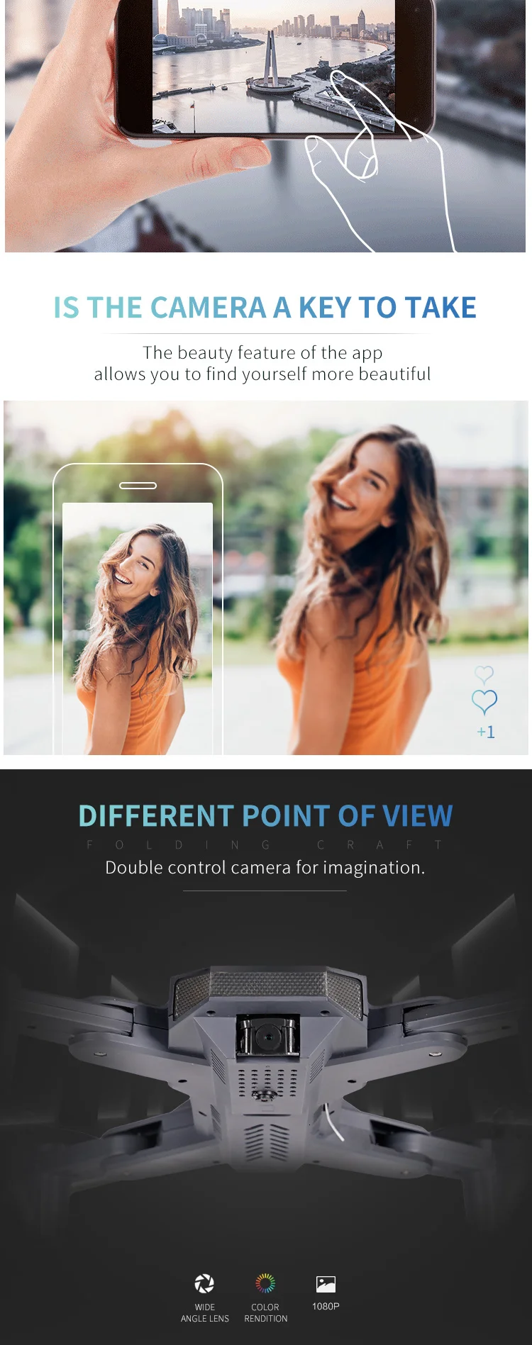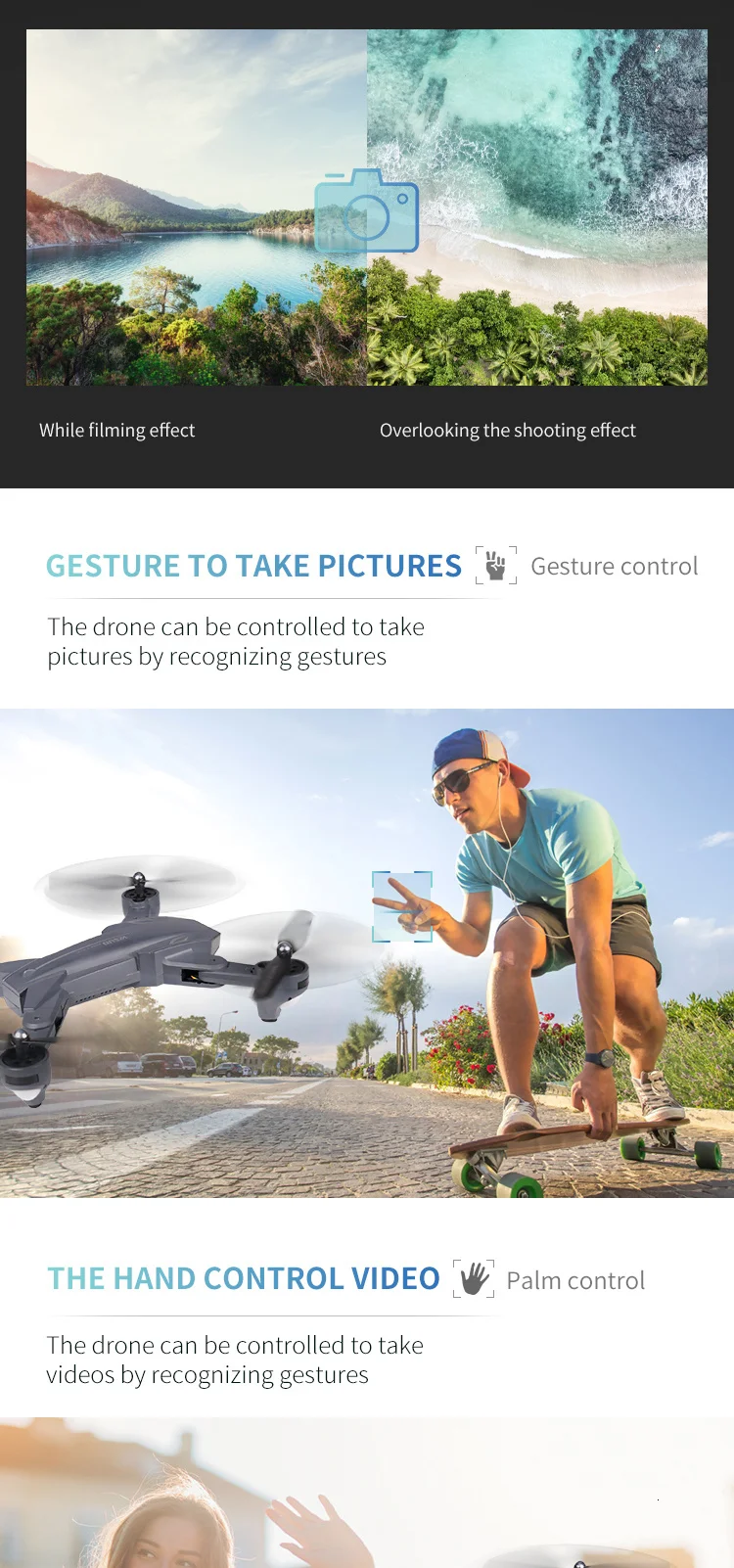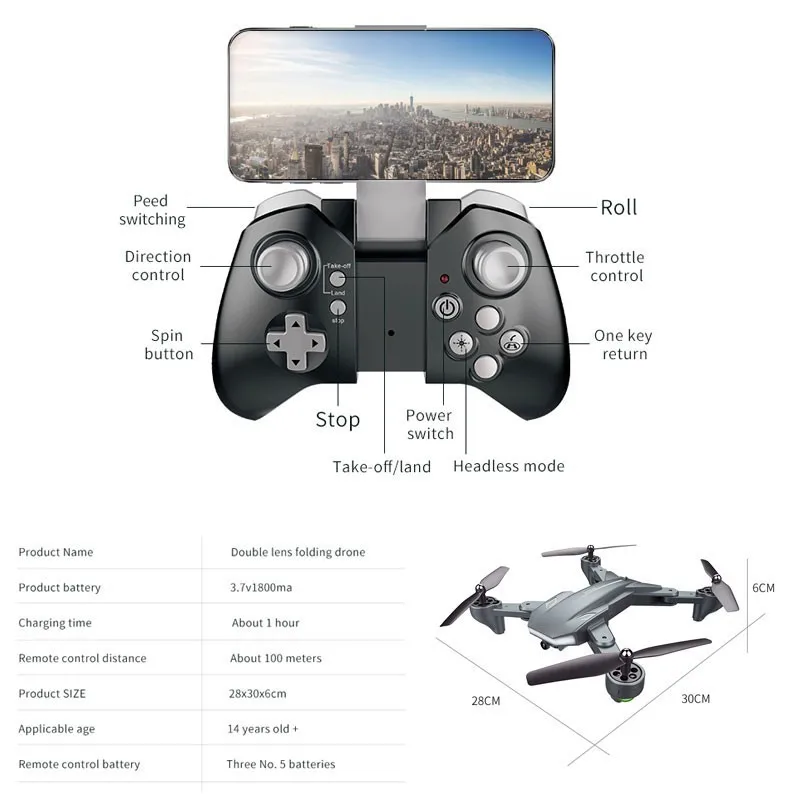 Особенности: 1. Длительное Время полета: около 20 минут 2. HD FPV Flight: оснащен двумя камерами 2MP + 0.3MP, которые передают видео в режиме реального времени, s upport переключатель просмотра: Обычный передний объектив, нижний объектив, изображение на картинке, сплит-экран, t он угол наклона камеры регулируется 3. Оптическая система позиционирования потока для стабильного полета, с оптической системой позиционирования потока, полет более стабильный 4. Один ключ следующий режим, я n режим, Дрон будет летать после игрока, чтобы запечатлеть прекрасный момент 5. Съемка жестов: t ake photoes только одним жестом без сложной операции 6. Управление g-датчиком: c ontrol направление полета путем наклона вашего мобильный телефон 7. Полетный путь: проигрыватель может спроектировать линию полета на интерфейсе приложения 8. Безголовый режим: в этом режиме вам не нужно знать положение головы дрона 9. Функция Флип 360 градусов, просто нажмите одну клавишу, вы можете увидеть аэробный полет 10. Высокая/Средняя/низкая скорость переключения, выберите скорость, которая вам нужна, поможет вам лучше контролировать свой Дрон 11. Возврат одной кнопки: Нажмите одну клавишу, Дрон вернет оригинальное место полета, полет более безопасен 12. Тонкая настройка и тонкая настройка функции удаления, помогает исправить отношение полета, в то время как Дрон теряет свой угол полета 13. Загрузка приложения: qr-код в руководстве Характеристики: Характеристики: камера, Wi-Fi приложение управления, WiFi FPV Функции: 3D трюк, Аэрофотосъемка, камера, вперед/назад, FPV, режим g-датчика, Режим жестов, Безголовый режим, автоматический возврат одной кнопки, оптическое позиционирование потока, замедление, ускорение, Поворот влево/вправо, вверх/вниз, Путевые точки, Wi-Fi соединение Пульт дистанционного управления: 2,4 ГГц беспроводной пульт дистанционного управления, WiFi Пульт дистанционного управления Канал: 4-Каналы Режим радио: режим 2 (левая дроссельная заслонка), приложение WiFi Подробное Расстояние управления: около 50 м Совместимость с дополнительными карданными: нет Передатчик Мощность: 4x1,5 V AA батарея (не входит в комплект) Аккумулятор: 3,85 В 1800 мАч литий-ионный Время полета: около 20 минут Время зарядки: около 1 ч Посылка Вес: 0,795 кг Размер продукта (Д * Ш * В): 44,00*44,00*6,50 см Список посылка: 1 Радиоуправляемый Дрон 1 х пульт дистанционного управления 1x3,7 V 1800mAh литий-полимерный Батарея 1 зарядное устройство USB 4 запасных пропеллера 4 x защита пропеллера 1 x Руководство пользователя Часто задаваемые вопросы: Пожалуйста, не используйте в случае многих вариантов WiFi, могут быть помехи сигнала. Если у вас возникли проблемы с подключением Wi-Fi дрона, попробуйте несколько раз его выключить и включить. При возникновении любых других проблем с Wifi, пожалуйста, свяжитесь с нами как можно скорее. Не продолжайте летать над 3-4 батареями без перерыва, что не является хорошим для жизни дрона. Не перезаряжать и не перезаряжать батареи. Телефон на картинке не входит в комплект. Возможны некоторые отклонения из-за ручного измерения или небольшой разницы в цвете из-за условий фотографирования. Спасибо за понимание.