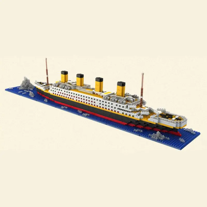 Современный Известный корабль, плавающий в открытом море, эта модель имеет полный набор мачт, стек парохода и айсберги. Вдохновленный титаническим кораблем изготовлен из 1860 нано-блоков