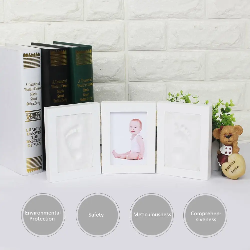 35x15,5 см трехскладная фоторамка из массива дерева с рисунком рук и ног, сувенирная рамка для новорожденных