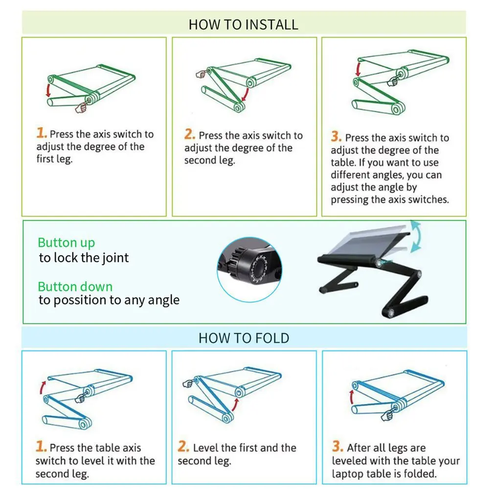 Каждая Складная Ножка имеет 3 ручки, которые могут регулировать высоту и угол. Вращение на 360 ° обеспечивает высокую эластичность, как и у человека.