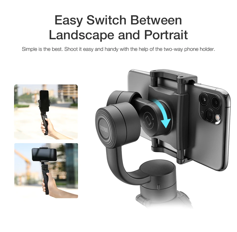 Simple is the best. Shoot it easy and handy with the help of the two-way phone holder.
