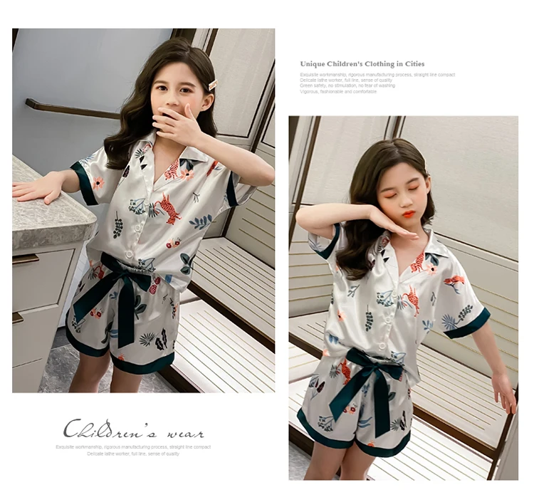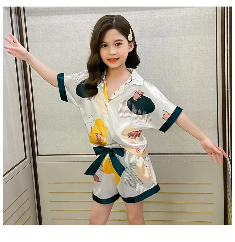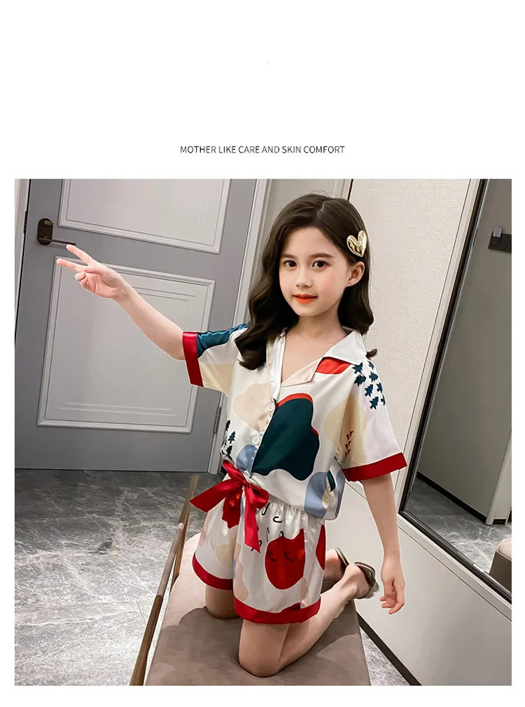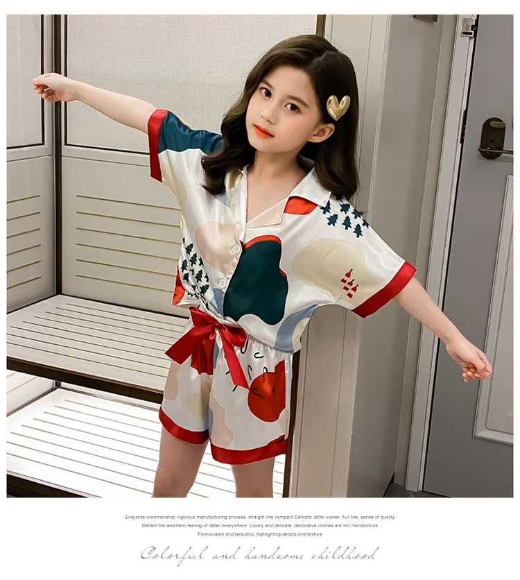 Детская одежда для сна; Летний пижамный комплект из Гладкого шелка со льдом; Шорты; Пижамы для девочек; Одежда для девочек-подростков; Пижамы с героями мультфильмов; Ночная рубашка; Домашняя одежда