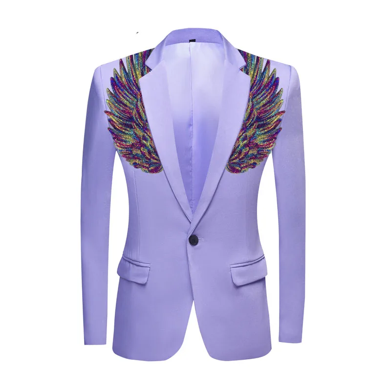 Отзывы о PYJTRL бренд мужской модный фиолетовый костюм куртка с разноцветными блестками