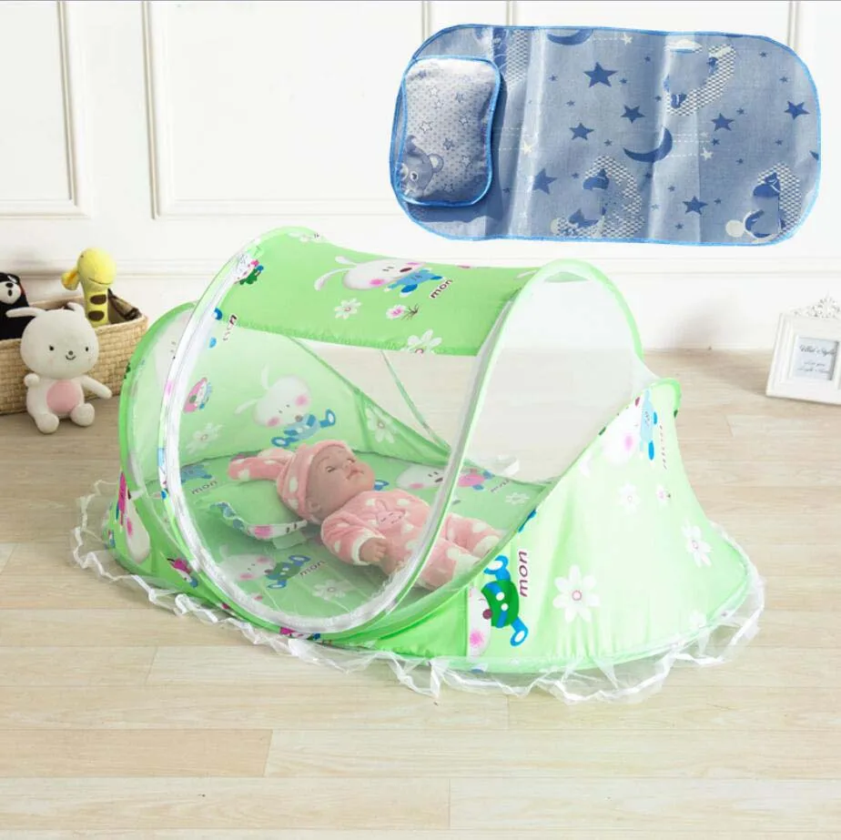 Материал:Полиэстер Посылка включает:4 шт./компл.(Москитная сетка + летний спальный коврик+ Летняя подушка + хлопковая подушка)Москитная сеткаРазмер: Длина 110 см ширина 60 см высота 65 см