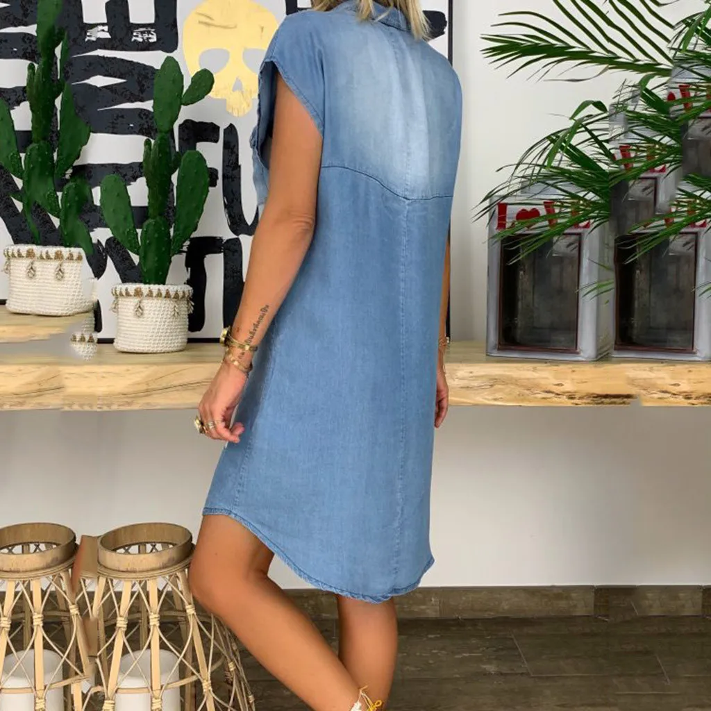 Женские Повседневные Вечерние джинсовые платья с отложным воротником без рукавовОсобенности: