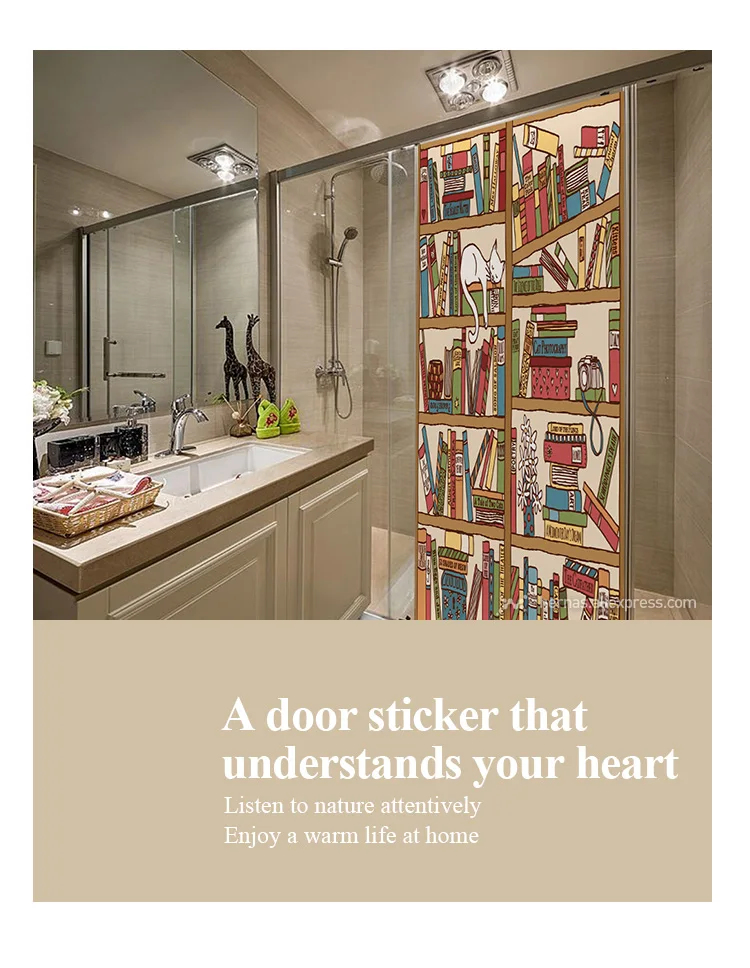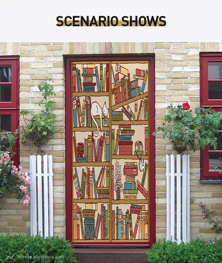 Отзывы о 3D creative Animated bookcase door stickers wall self-adhesive waterproof removable | Дом и сад
