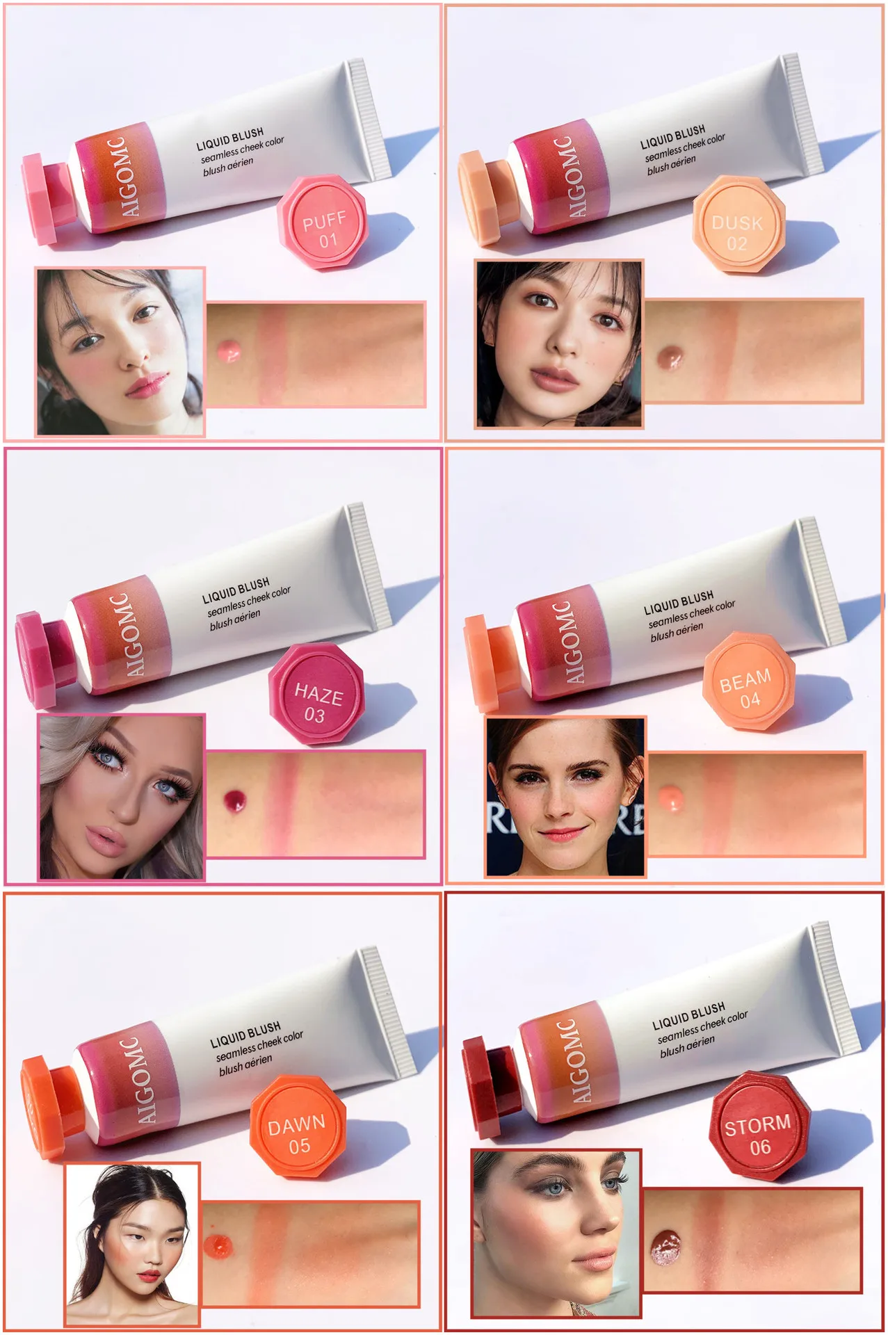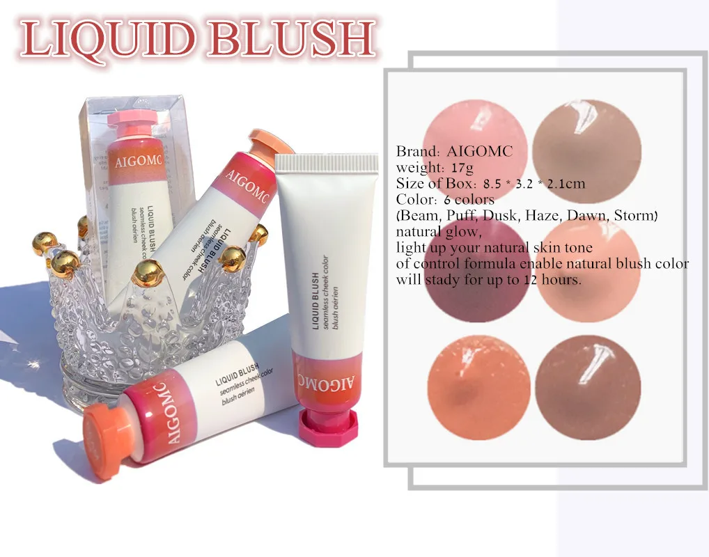 AIGOMCЖидкие румяна, Косметические румяна, гель, крем-румяна, 6 цветов, Длительное Действие, натуральные Румяна для лица, контур, макияж, 10 мл