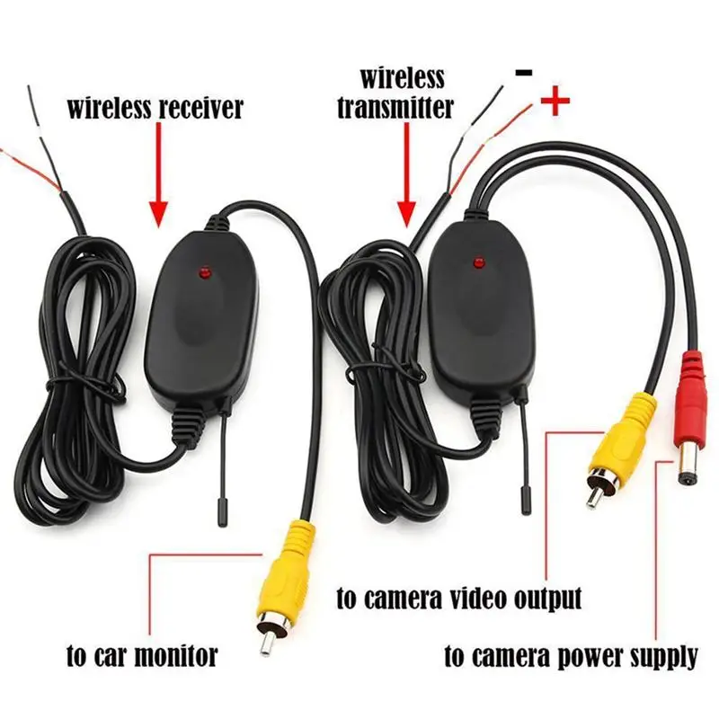 -Идеально преобразует проводную камеру заднего вида в беспроводную камеру. Это может избежать сложного подключения, чтобы использоваться в автомобильном мониторе, головном устройстве, dvd-плеере, камере и т. д.