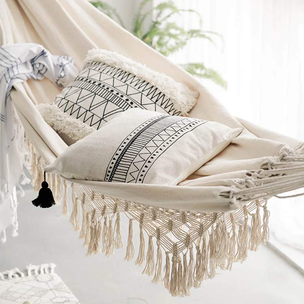 Характеристика: 1. Свободные и длинные кисточки. 2. Чесаный утолщенный холст. 3. Свежий и элегантный, мягкий хлопок, текстура с кисточками, Экзотический стиль. Спецификация: Материал: холст Цвет: белый Размер: 200x15 0 см/78.74x59.06in Подходит для: Двухместный Вес: 1800 г Максимальная нагрузка: 120 кг ПРИМЕЧАНИЯ по использованию гамака: 1. Не используйте чрезмерную силу во время использования, чтобы избежать поломки точки подключения. 2. Опорная точка подвесного гамака должна быть твердой, а высота подвешивания не должна превышать 1 м/3,28 футов, чтобы предотвратить случайное падение и травму. 3. Не привязывайте шнурок кровати к опорной точке с острыми предметами, чтобы избежать повреждения веревки. 4. Избегайте повреждения гамака кнопками или острыми предметами, которые вы носите с собой. 5. Перед использованием проверьте трос гамака. Чем короче расстояние от веревки, тем лучше. 6. Ткань этого продукта не является огнеупорной, пожалуйста, держитесь подальше от источника огня. 7. Обратите внимание на чистую и ровную поверхность вокруг гамака, избегая мест, где существуют твердые предметы, такие как гравий, ветви и т. д. (попробуйте использовать их на траве). Советы: 1. Всегда проверяйте веревки на обоих концах, чтобы избежать чрезмерного износа. 2. Запрещено качать назад и вперед в большой степени, чтобы избежать ненужных повреждений, вызванных быстрым износом канатов на обоих концах. 3. Пожалуйста, обратите внимание на персональную безопасность во время отдыха и развлечений. Примечание: 1. Из-за различных настроек монитора и светильник эффект, фактический цвет элемента может быть s светильник ly отличается от цвета, представленного на снимках. Спасибо! 2. Возможны отклонения в 1-3 см вследствие измерений вручную. 1 х белая сумка для хранения