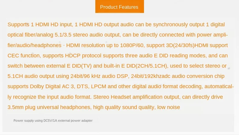 Отзывы о HDMI в аналоговый 5 1 аудио декодер dts преобразователь 3D / 1080P поддерживает Blu-Ray DVD и