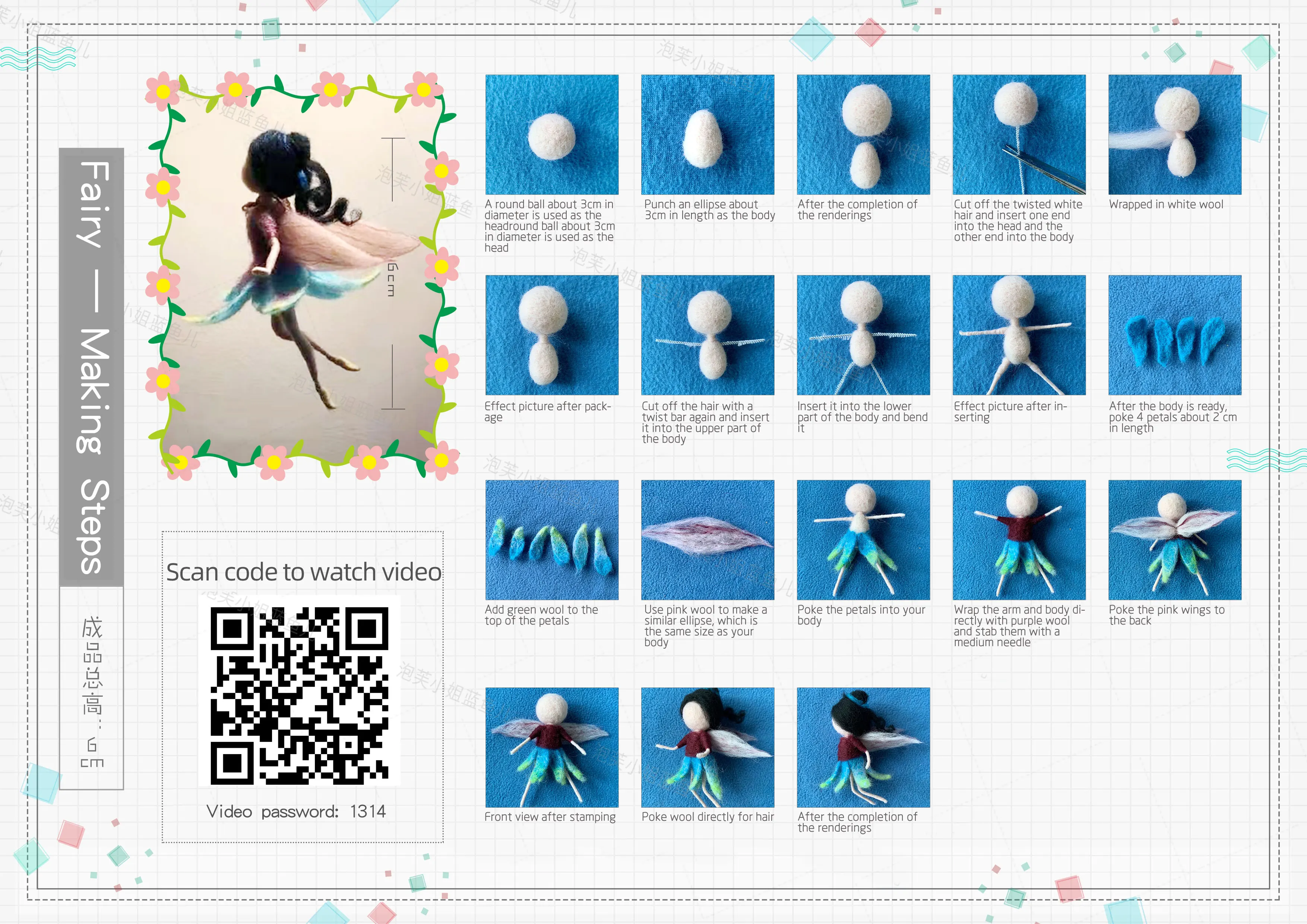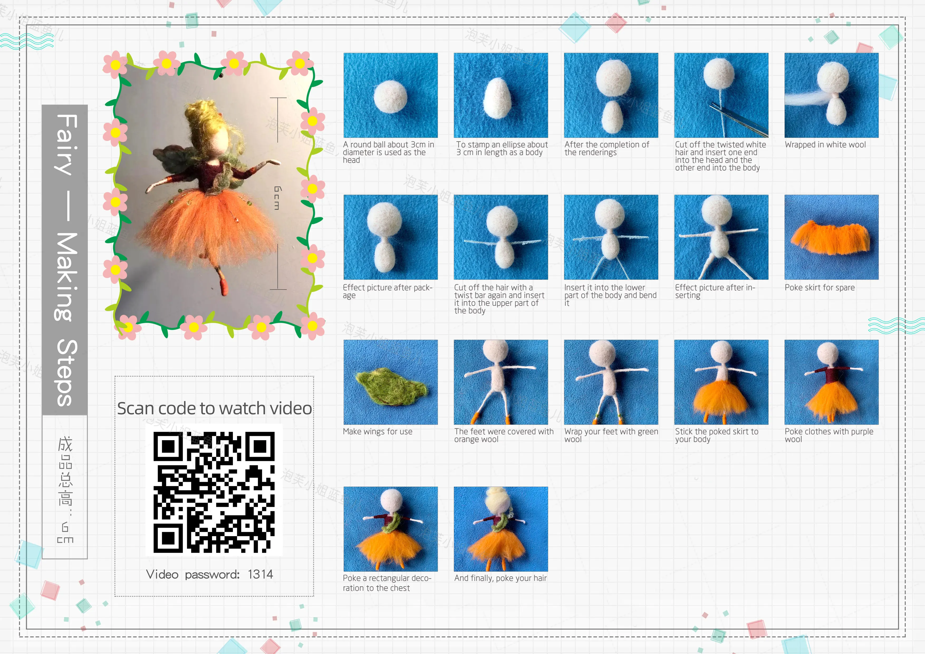 Вы можете отсканировать qr-код, чтобы посмотреть видео или следовать инструкциям, чтобы сделать милую шерстяную куклу