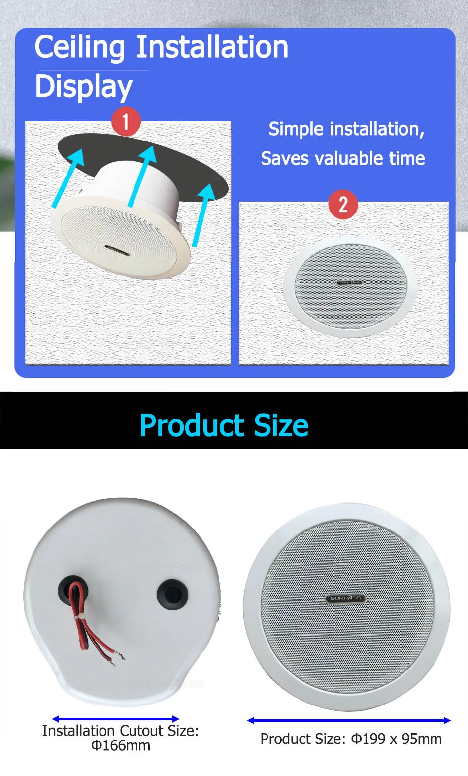 ● Размер выреза установки: Φ166мм