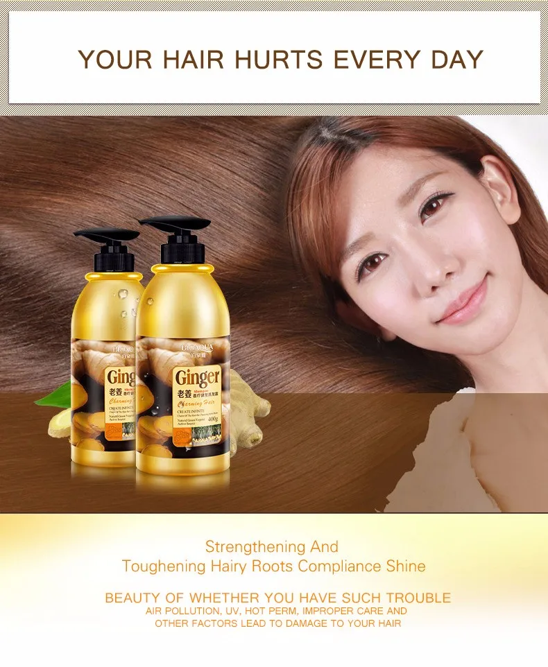 BIOAQUA натуральный травяной шампунь для имбиря и условный анти-выпадение волос и быстрый рост волос для контроля масла Уход за волосами 400 мл