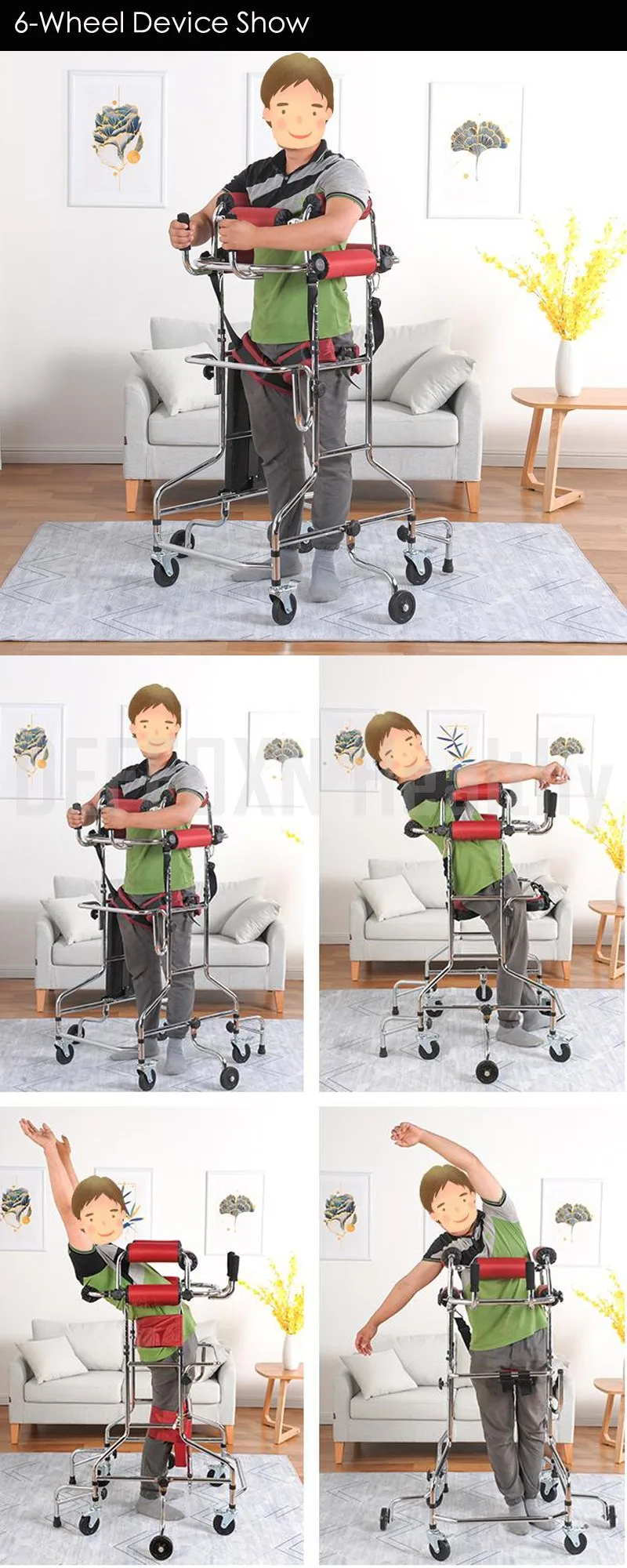 * Двухосный стиль, ширина может быть скорректирована нажатием мрамора, подходит для разных частей тела. * Мягкие полимерные губчатые насадки на руль, удобные нескользящие, без вреда для тела. * Изготовлен из высокопрочного алюминиевого сплава * Высота реабилитационного ходунка регулируется * Усиленная поперечная планка, чтобы сделать рамку прочной и стабильной, Максимальная загрузка 100 кг. * Вращение на 360 градусов универсальные колеса, безопасно и легко управлять * Губчатая подушка высокой плотности удобна, 2 вида на выбор, защитная подушка сиденья обычно для женщин, а Подушка ремня безопасности для ног обычно для мужчин. * Удобная черная полиуретановая Пластина сиденья может помочь людям отдыхать в качестве инвалидной коляски, когда они чувствуют себя испытанными * Повязка на ногу для стоя, которая используется для тренировки стоя * Реабилитационные ходунки с противоподложными кронштейнами/колесами и боковыми колесами более безопасны, чем обычные. * Функция защиты от опрокидывания и ретроверсии * Humanized колеса дизайн с тормозом, подходит для людей, которые не имеют большой прочности. * Лучший подарок для семьи старшего возраста и друзей с ограниченной мобильностью. Сделайте их снова, чтобы вернуться к жизни на открытом воздухе. Применение: 1. Прогулочная рама-это своего рода прогулочные средства для пожилых людей, людей с ограниченными возможностями и людей с ограниченными возможностями. Это помогает людям ходить с помощью силы своих рук. 2. Прогулочная рама является хорошим реабилитационным оборудованием, помогающим людям получить травмы ног, особенно широко используется в больницах и реабилитационных центрах. 3. Прогулочная рама-это хорошая помощь для пользователей инвалидных колясок, а также хорошая рама для унитаза, чтобы стоять