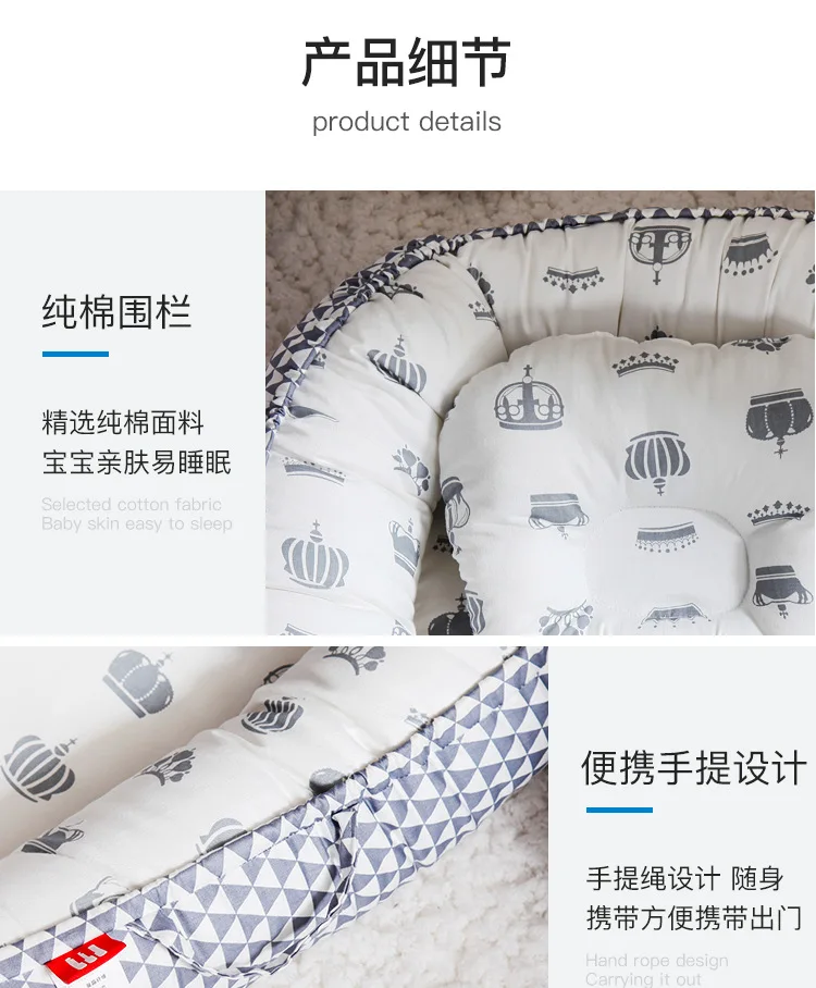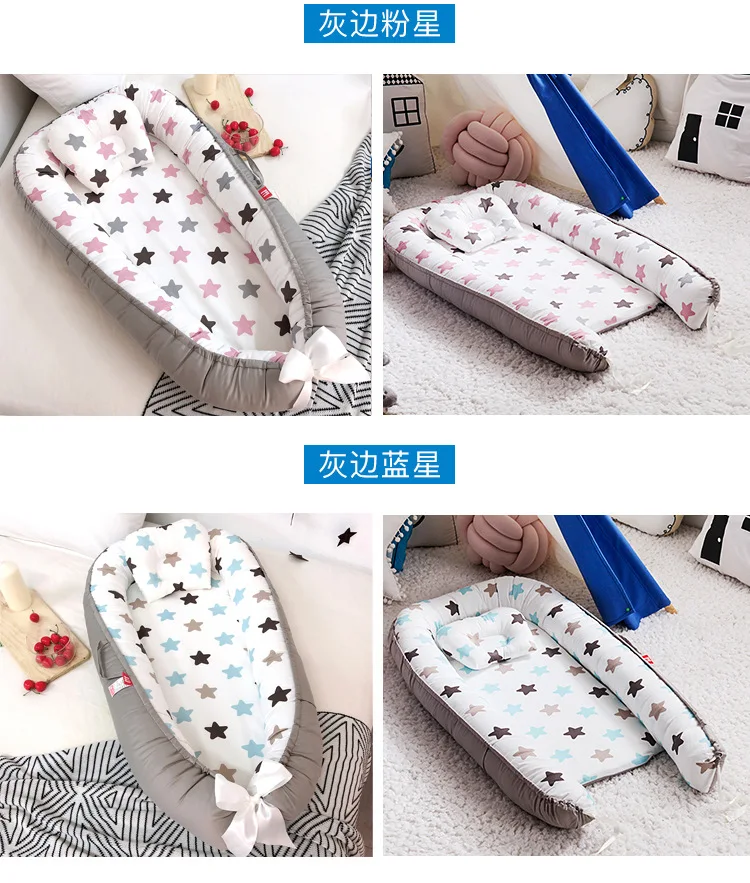Портативная детская кровать для мальчиков и девочек, кровать для путешествий, Детская Хлопковая колыбель, детская мягкая и удобная кровать для новорожденных, Подушка для сна