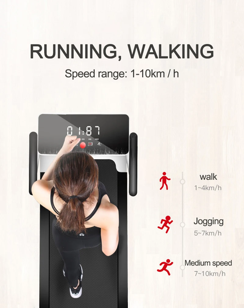 ● Идеально подходит для использования дома и в офисе ● Складная конструкция для удобного хранения ● Скорость регулируется до 1-7,5 км в час ● Амортизирующая мягкая Беговая доска высокой плотности ● Сверхпрочная стальная конструкция, 3.5HP малошумный мотор ● Экран четко отображает время, скорость, расстояние, калории ● Обе стороны с прочной планкой для обеспечения вашего комфорта, безопасности и баланса во время бега ● Эффективно улучшает физическую форму, тонизирует мышцы и помогает похудеть