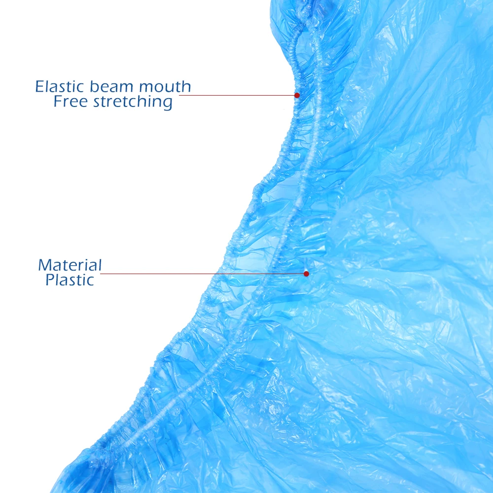 100 шт Пластиковые водонепроницаемые одноразовые бахилы для обуви Бахилы для дождливой обуви грязеотталкивающая Чистящая обувь синие бахилы