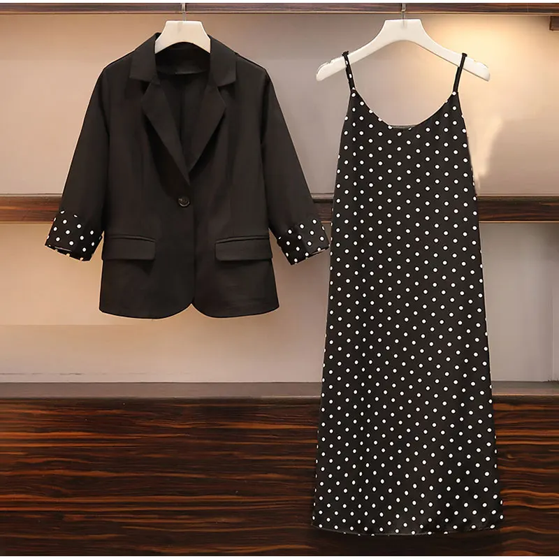 Отзывы о Женский блейзер в горошек с манжетами + платье большие размеры костюмы из 2